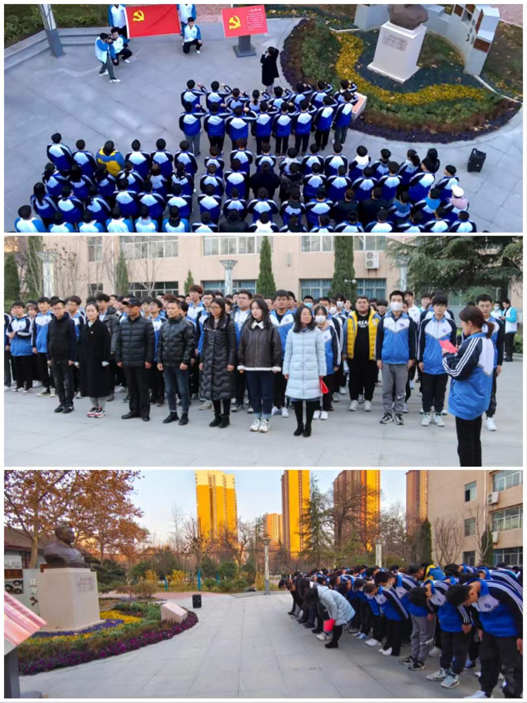 宣誓仪式在激昂的《国际歌》中拉开帷幕,航空学院党总支委员张旭宣读了中共陕西工业职业技术学院学生工作委员会《关于接收预备党员的审批意见》,宣传委员师小娜带领15名新党员面对党旗慷慨激昂庄严宣誓。新党员代表曹怡婷、入党积极分子代表陈茂和分别作了表态发言。随后,所有党员、积极分子面对老校长王达成雕像鞠躬致敬,深切缅怀这位把毕生精力献给党和人民的老校长。