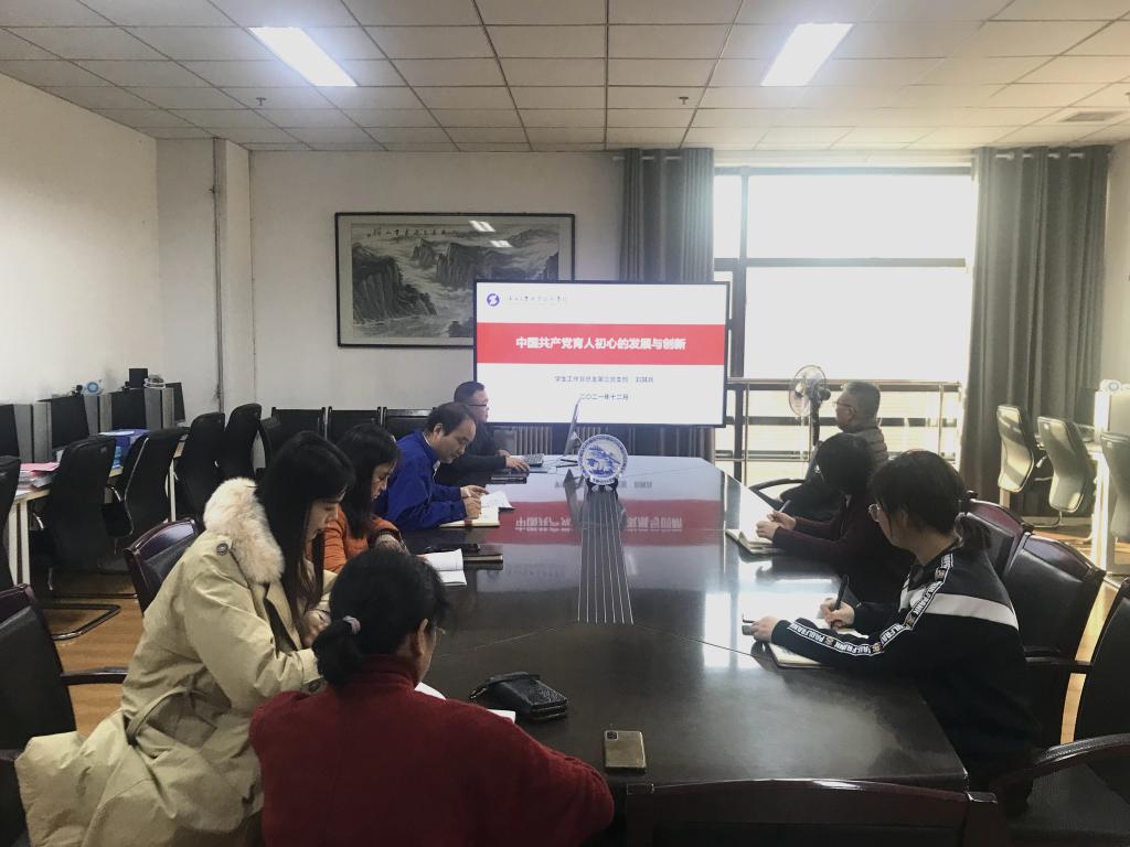 为从党的百年伟大奋斗历程中汲取继续前进的智慧和力量,深入学习贯彻习近平新时代中国特色社会主义思想,坚定理想信念,扎实推进党史学习教育。12月20日上午,学生工作党总支第三党支部书记刘其兵以“中国共产党育人初心的发展与创新”为主题,给支部全体党员上了一堂生动、深刻的党课。