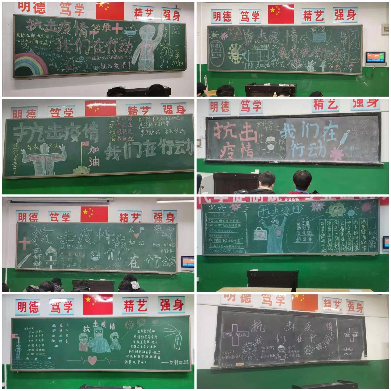 为全面打赢新冠肺炎疫情阻击战,做好抗疫知识宣传,展现同学们的抗疫决心,12月26日晚自习期间,机械学院组织2020、2021级所有班级开展“抗击疫情 我们在行动”黑板报大赛。