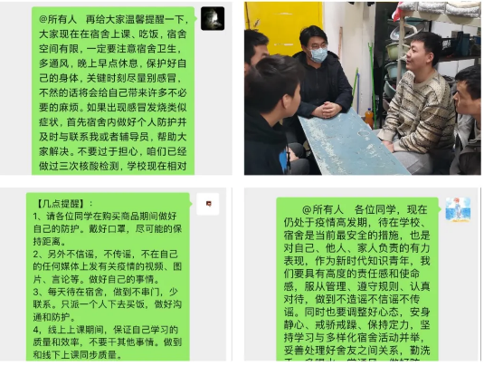 马院战疫人不仅是“充电宝”,也是“暖心宝”。无论是作为专职思政课教师,还是兼职班主任,马院战疫人始终奔走在学生教育管理的第一线,他们“讲防控、听需求、解忧患、强信心”,把马院教师对学生的关爱与引导,或通过面对面、或依托线连线,送到学生们的心里。
