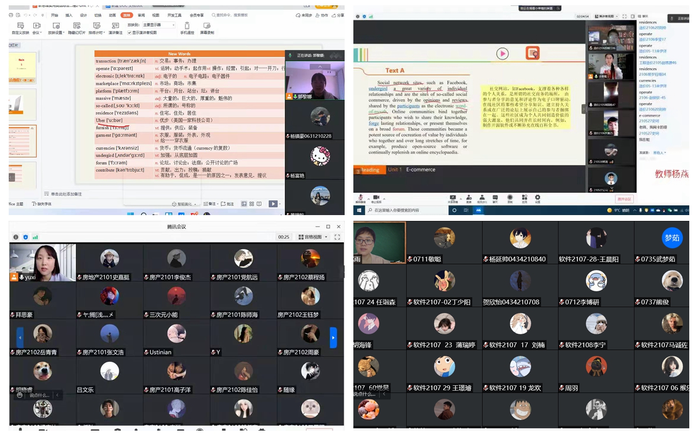 教师们根据实际教学情况,以腾讯会议为教学平台,利用学堂在线、职教云等优质课程资源,结合授课班级的QQ群、微信群等媒介,完成班级签到、发布学习任务、组织线上讨论、完成作业等授课环节,在授课完成后,还利用平台有关数据对学生学习情况进行有效评价和分析,收到了较好的教学效果。