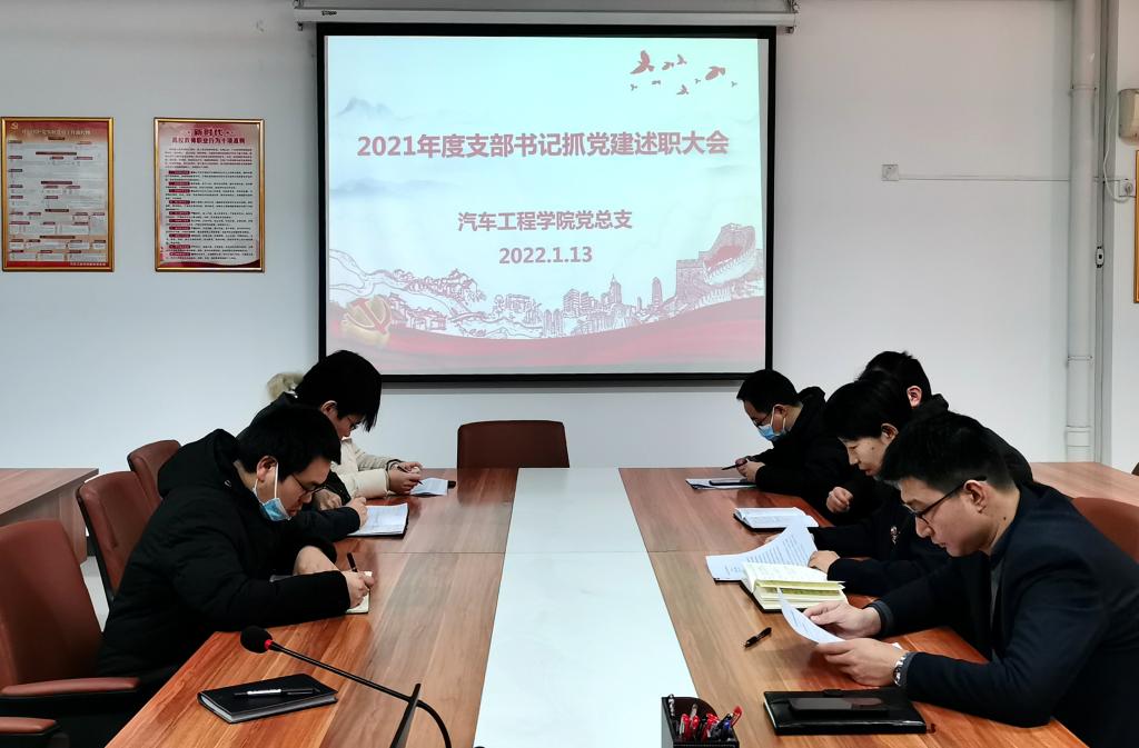1月13日,汽车工程学院党总支组织召开了2021年度党支部书记抓党建述职大会。结合疫情防控相关要求,会议采取线上线下相结合的方式,现场述职在崇文主楼A505会议室举行,全体在校留岗党员现场参会,其余未在校党员线上参会。会议由汽车工程学院党总支书记高亚宁主持。