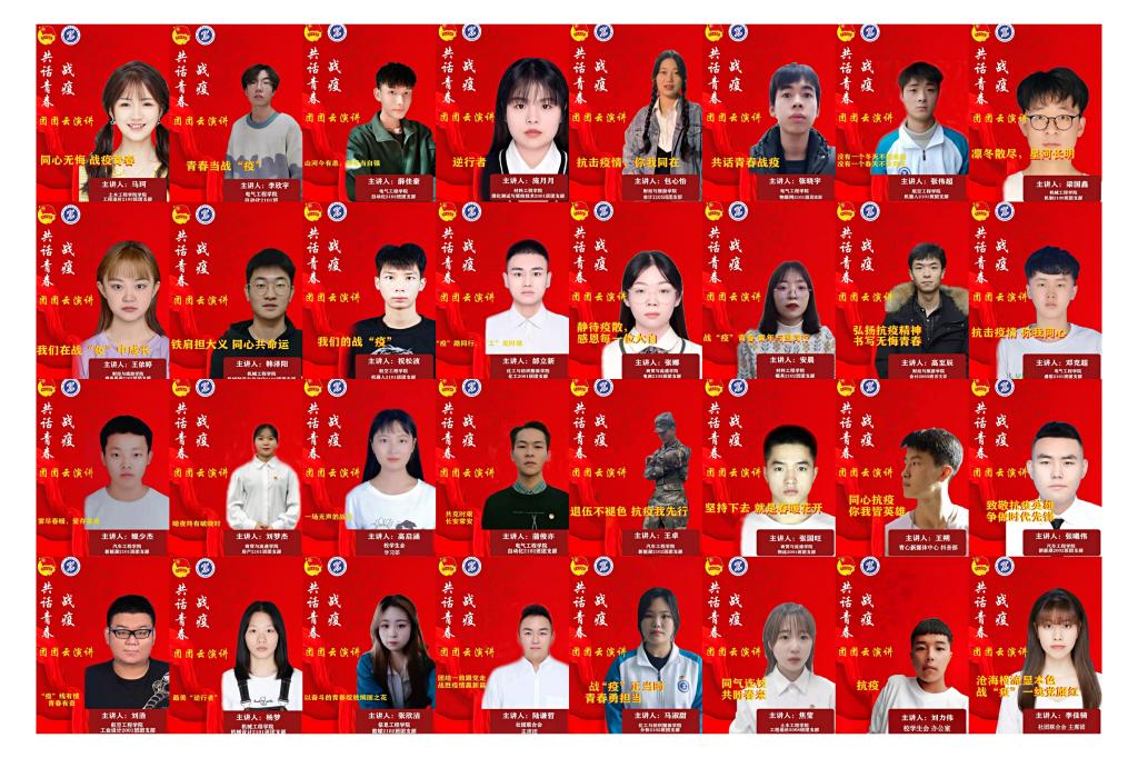 “共话青春战疫”团团云演讲系列活动是我校共青团在思想引领育人方式上有效探索,依托新媒体平台,用“线上的、青年的、温度的”传播方式,不断增强发挥我校共青团凝聚力、组织力和号召力,持续开展内容积极、导向正确、喜闻乐见、形式多样的线上主题教育活动,引导青年学生坚定理想信念、深化理论认知、厚植爱国情怀,让青春战“疫”的学生们思想不停滞,信仰更坚定。
