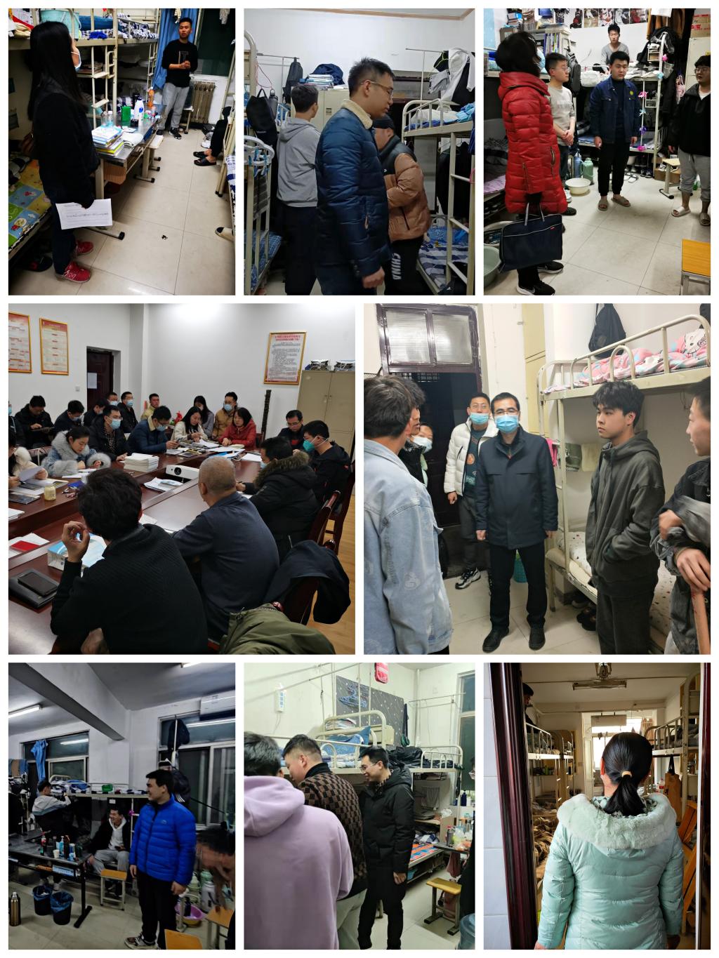 2月27日晚自习之后,机械学院总支书记和副书记带队,全体辅导员及班主任集体行动进行宿舍检查,进一步落实返校后日常安全及卫生督查,重点了解学生返校情况及返校后安顿情况,了解和询问学生各项生活需求和要求,同时对宿舍纪律进以及抽烟、喝酒、晚归、夜不归宿等违纪情况进行再次强调,希望从开学第一天起,让老师绷紧责任弦,让学生绷紧安全弦,共同创建文明和谐校园环境。
