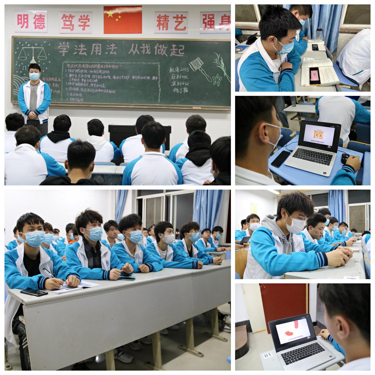 为推动航空学院学生学法、用法有序开展,全面提高其法治观念、法律素质和公民意识,更好地推进普法教育,将法制教育与学生的生活紧密联系起来。4月1日,航空学院20级、21级在各班晚自习教室组织开展“学法守法我先行”法治教育主题班会。