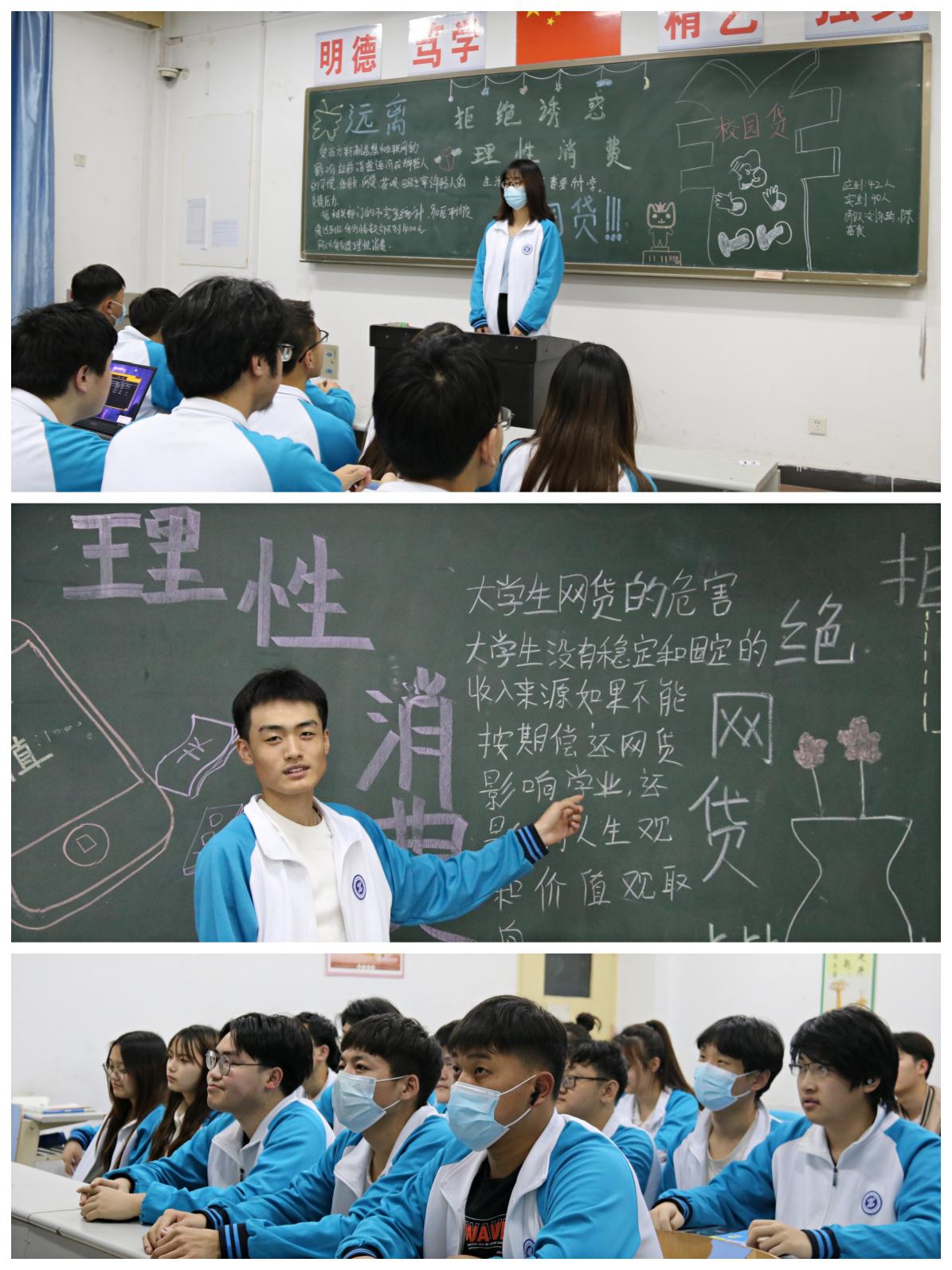 为了提高同学们安全防范意识,使同学们树立理性消费观念,践行适度消费、理性消费、绿色消费、勤俭节约的消费观念。4月11日晚,航空学院组织20级、21级全体学生在各班晚自习教室开展了以“量力而行、理性消费、拒绝网贷”为主题的教育班会。