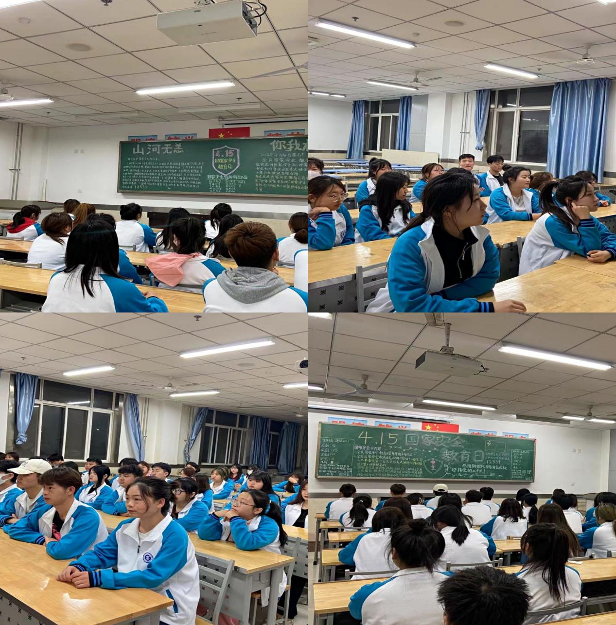 为切实提高大学生维护国家安全的意识,树牢总体国家安全观,感悟新时代国家安全成就,2022年4月14日晚自习,商贸学院组织全体学生开展“全民国家安全教育”主题班会。