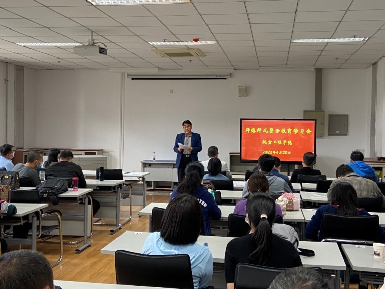 为认真落实《教育部关于建立健全高校师德建设长效机制的意见》《中共中央国务院关于全面深化新时代教师队伍建设改革的意见》《新时代高校教师职业行为十项准则》等文件精神,按照学校党委教师工作部要求,4月20日下午,航空工程学院党总支在精艺楼3015组织全体教师开展师德师风警示教育学习活动。会议由党总支书记刘军旭主持。