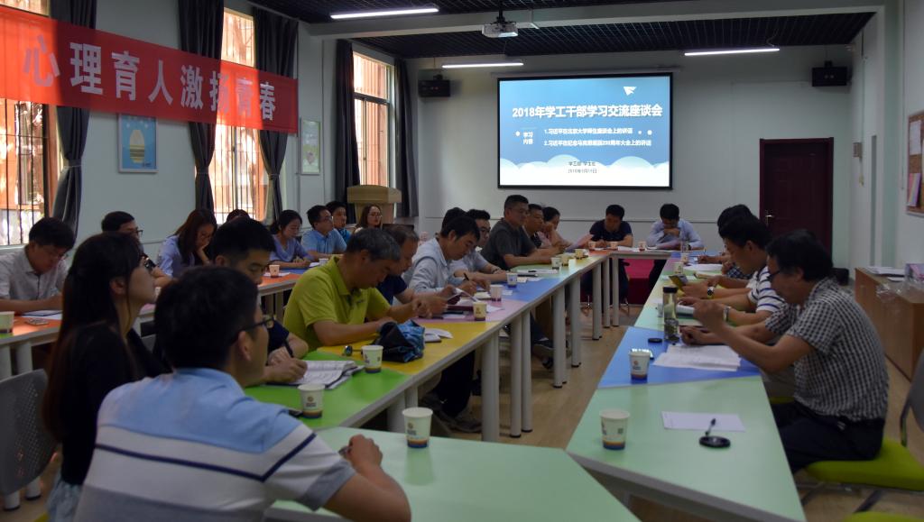 5月15日下午,学工部在心理咨询中心团体辅导室召开2018年学工干部学习交流座谈会。学工部部长、学生处处长王超联,学工部(学生处)科级以上干部、各二级学院学工办主任和近两年入职的辅导员共30余人参加了会议。会议由学生处副处长张翔主持。