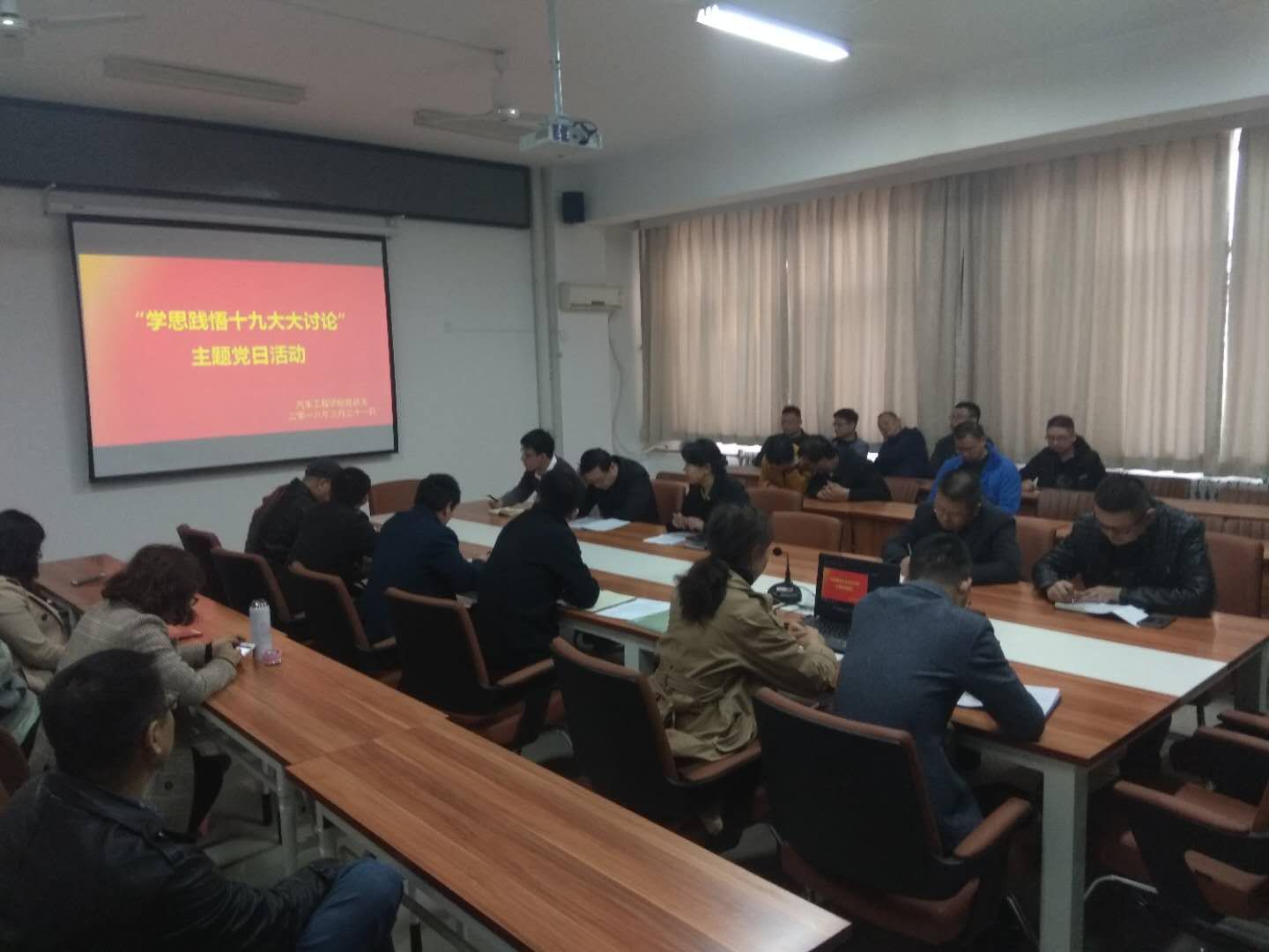 为进一步学习贯彻党的十九大精神,强化教职工追赶超越创一流意识,3月21日下午,汽车学院党总支全体党员在崇文楼A505开展以“学思践悟十九大精神”为主题的学习教育党日活动,活动由党总支书记高亚宁主持。
