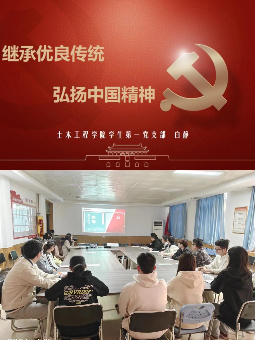 9月27日上午11点,土木学生第一党支部在格物楼219开展了支部书记将党课活动,本次党课以《继承优良传统,弘扬中国精神》为主题,由土木学生第一党支部书记白静主讲,土木工程学院全体学生党员参会聆听。