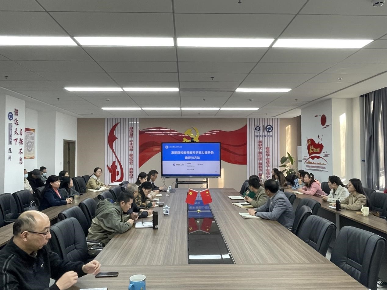 会上,刘引涛处长作了题为《高职院校教师科研能力提升的路径与方法》的专题报告,解读了《陕西工业职业技术学院横向科研项目及经费管理办法》《陕西工业职业技术学院科技成果转化管理实施办法(修订)》《陕西工业职业技术学院知识产权(专利)管理办法》等相关文件,重点对科研管理工作、课题申报注意事项、经费报销制度、科研平台搭建、考核及奖励等相关内容进行了深入解读,进一步加深了全体教职工对相关科研政策的了解。白国政院长随后进行了科研动员,鼓励学院教师,特别是博士、青年教师要积极树立科研意识、参与科研活动,不断提升个人水平与素质,以科研促进教学。