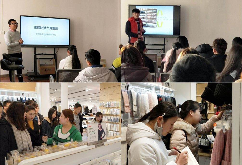 12月21日,“2017级热风现代学徒订单班”全体成员进入企业参加企业第一阶段课程学习,本阶段任务主要是学徒在企业环境下深入了解服装陈列、营销礼仪及成本预算。截至目前,“2017级热风现代学徒订单班”第一阶段学习任务圆满完成。2017年12月22日,以纯公司培训讲师进入校园为“2017级以纯现代学徒订单班”开展“选择比努力更重要”的专题讲座,企业老师大量的实战案例给学徒们留下了深刻的印象,企业老师灵活的课堂教学组织形式也深受欢迎。教学结束后,两个合作企业均组织了学习成果汇报和经验分享,在分享学习成果的过程中,每个学习小组都非常好的完成了情景再现学习任务,他们不仅运用了拓展学习过程中所观察到的方法,更是大量的运用了学校教学中所学到的知识,在学习成果汇报时得到了企业导师的认可。