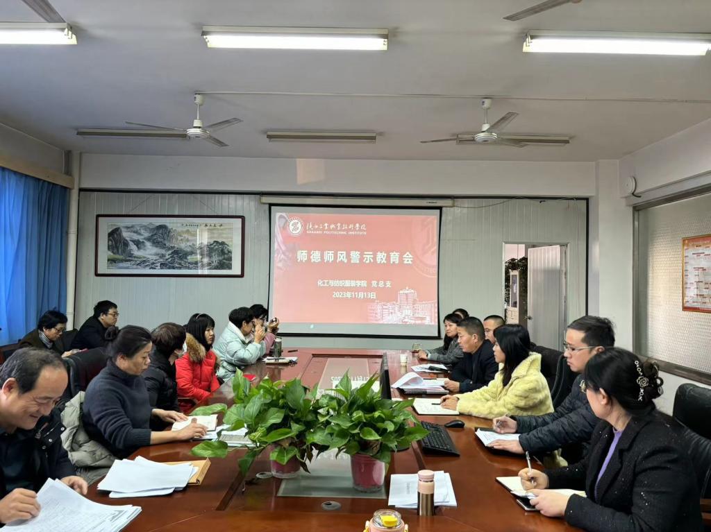 为进一步加强教师思想政治、师德师风和业务能力建设,着力打造高质量教师队伍,引导广大教师受警醒、明底线、知敬畏,树立高尚的师德形象,承担起时代赋予教师的神圣使命。化工与纺织服装学院于11月13日下午在崇文楼811会议室召开师德师风警示教育会,全体教职工参加会议,会议由党总支书记杨修国主持。