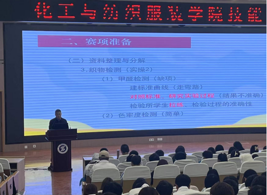 最后,化工与纺织服装学院院长刘迪肯定了指导教师和参赛学生在技能大赛中付出的努力和取得的成绩,着重强调大赛指导教师和参赛学生要查找差距,补齐短板,苦练技能,钻研学习,以赛促教,以赛促改,力争在今后的比赛中取得更优异的成绩。