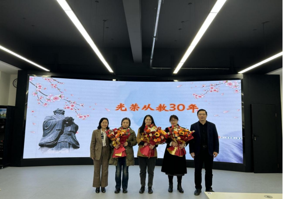 11月22日下午,财经与旅游学院党总支在经开校区崇理楼D403组织举行了“光荣从教30年”表彰暨教师荣休仪式,庆祝潘丽萍、薛春艳、阮亚莉三位老师光荣从教30年,祝贺牛晓侠老师光荣退休。财经与旅游学院全体教师参会。大会由财经与旅游学院党总支教师第一党支部支部书记元媛主持。