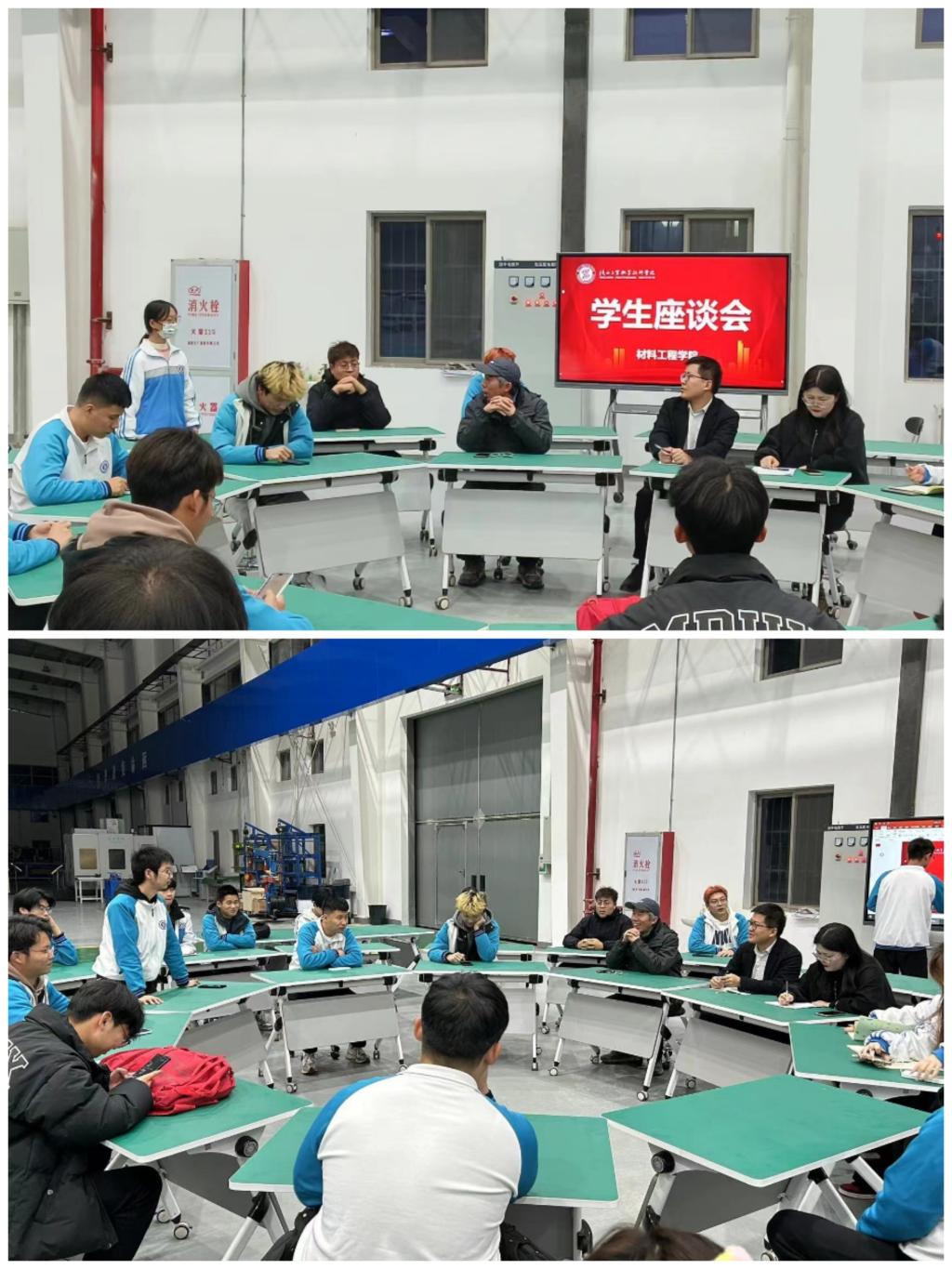为更好地了解学生的学习情况,及时发现并解决问题,进一步加强学生日常管理。11月21日晚,材料工程学院在材料5G实训基地一楼召开了2023-2024学年第一学期期中教学检查学生座谈会。材料工程学院学工办主任赵盼盼、大一大二辅导员以及2022级、2023级学生代表共30余人参加了此次座谈会。会议伊始,学工办主任赵盼盼老师明确了此次座谈会的意义和目的,随后各班学生代表依次发言。学生围绕专业学习和日常生活等方面各抒己见,畅所欲言,不仅涉及学习状况,还包括生活和班级建设,如有关理论与实践课的开展、班级学习氛围的提高、晚自习纪律、宿舍卫生等。参会老师们认真聆听,对学生热心提出的意见建议表示充分肯定和感谢,针对同学们在学习中遇到的问题和困惑,详细记录,并就相关问题给学生现场进行解答分析。