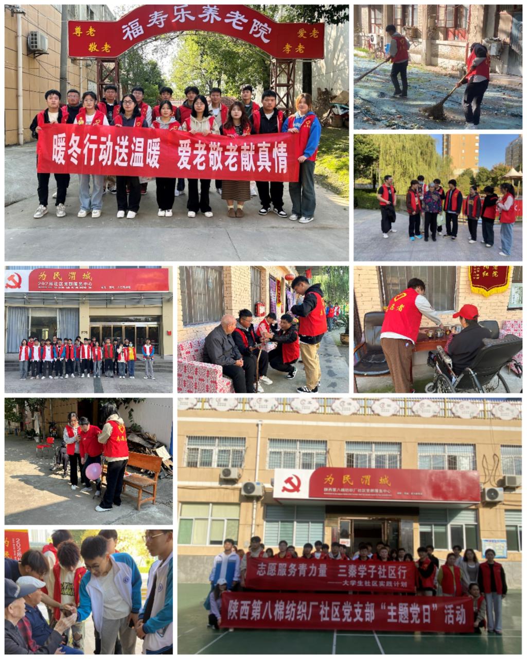深研真改,重“实践”。材料学院组建青年志愿者服务队,秉承“高标准、严要求、行动快、工作实、抢困难、送方便”以及“不让一个伙伴掉队”的“梦桃精神”,为团员和青年提供奉献的平台。11月,材料学院团总支先后与咸阳市陕棉八厂社区、新兴社区、文汇202社区联合开展了老旧小区治理实践活动,依托专业特色开展义务维修、社区卫生整治、垃圾分类宣传、环保及政策法规宣传等义务活动。10月,志愿服务队赴渭城区福寿乐养老院开展“暖冬行动送温暖,爱老敬老献真情光”志愿服务活动,结合青年志愿者为老服务“金晖行动”重点工作,材料学院团总支开展了服务需求调研、征集爱老敬老活动方案、制定服务计划、开展为老志愿公益服务等工作,引领团员和青年不断完善实践体系,培养奉献社会、服务人民的精神品质。