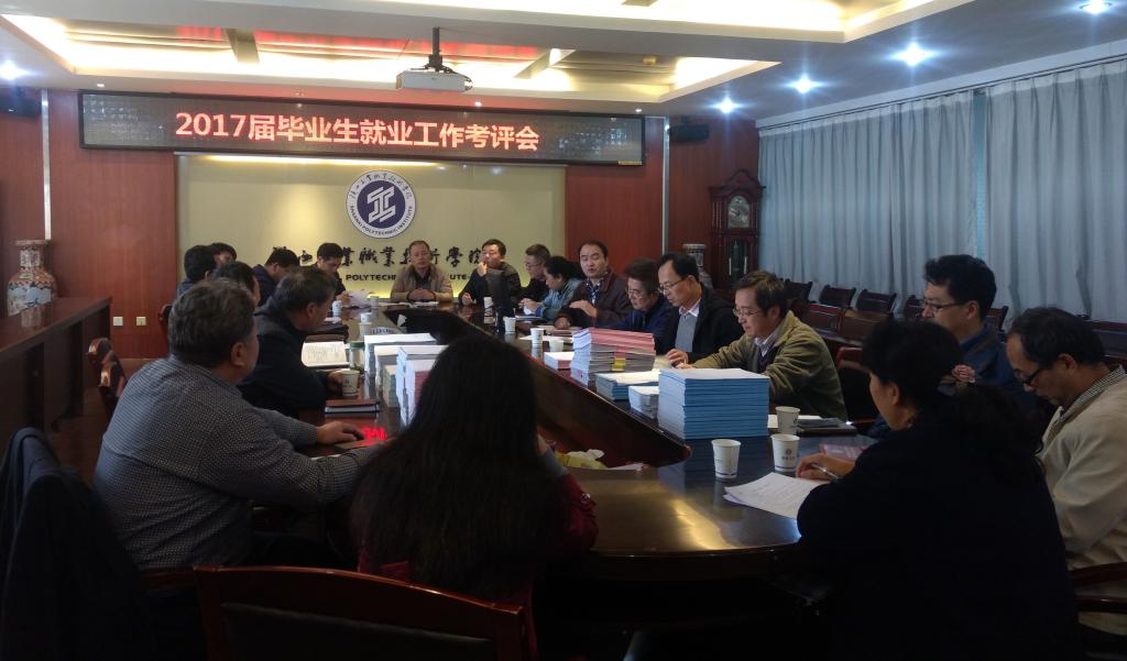 会上,卢文澈同志结合《毕业生就业工作考评办法(暂行)》中的考核指标,简单介绍了2017年就业考评评定办法,并将依据《就业工作考评指标体系》形成的考评结果提交就业考评小组审定。同时各二级学院书记依次向就业考评小组,介绍本学院就业先进候选人的工作事迹,就业工作考评领导小组认真听取汇报,仔细查阅了各学院的就业工作自评报告及支撑材料并对就业先进候选人进行联评。