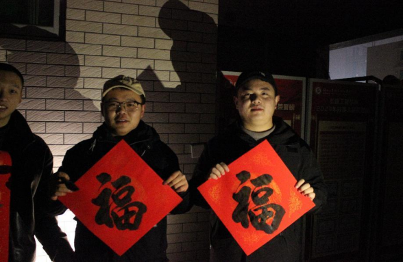 晚会开始前,机械工程学院在明德堂外设置了新年福利站,现场为大家写福字、送春联,同时为每位观众赠送荧光棒、手持灯牌等小礼品,会场的氛围也拉满了同学们对本次晚会的期待。