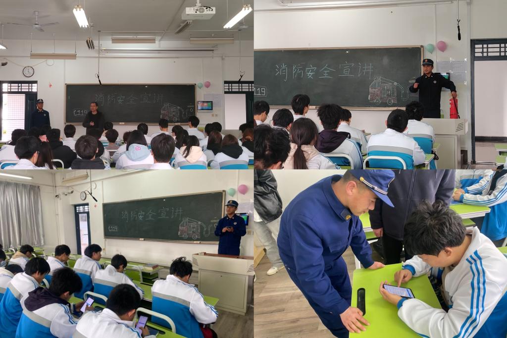 活动中,学工办主任马俊首先强调了此次宣讲活动的重要意义,结合近期发生的典型火灾案例警示,阐明了消防安全的重要性和严谨性,希望在场师生认真听讲,时刻保持警惕,丰富消防知识储备,提高安全防范能力。咸阳市渭城区消防大队文汇路消防所消防员贺郗凡结合校园典型火灾案例,深入剖析了校园消防安全隐患特点,立足学生日常学习生活,重点讲述高校宿舍火灾的安全隐患,如私自乱拉电源线路,违规使用电热器具,使用假冒伪劣电器等,进一步强化同学们对日常安全隐患,火灾发生原因、预防措施、应急处置,火灾发生后如何正确报警、如何正确逃生等基础认知。此外,宣讲现场演示了消防器材的正确使用方法,现场互动积极,气氛活跃。宣讲结束后,消防员组织在场师生关注了“陕西消防”微信公众号,帮助大家掌握更多消防知识,提高消防安全意识,时刻做到安全警钟长鸣。