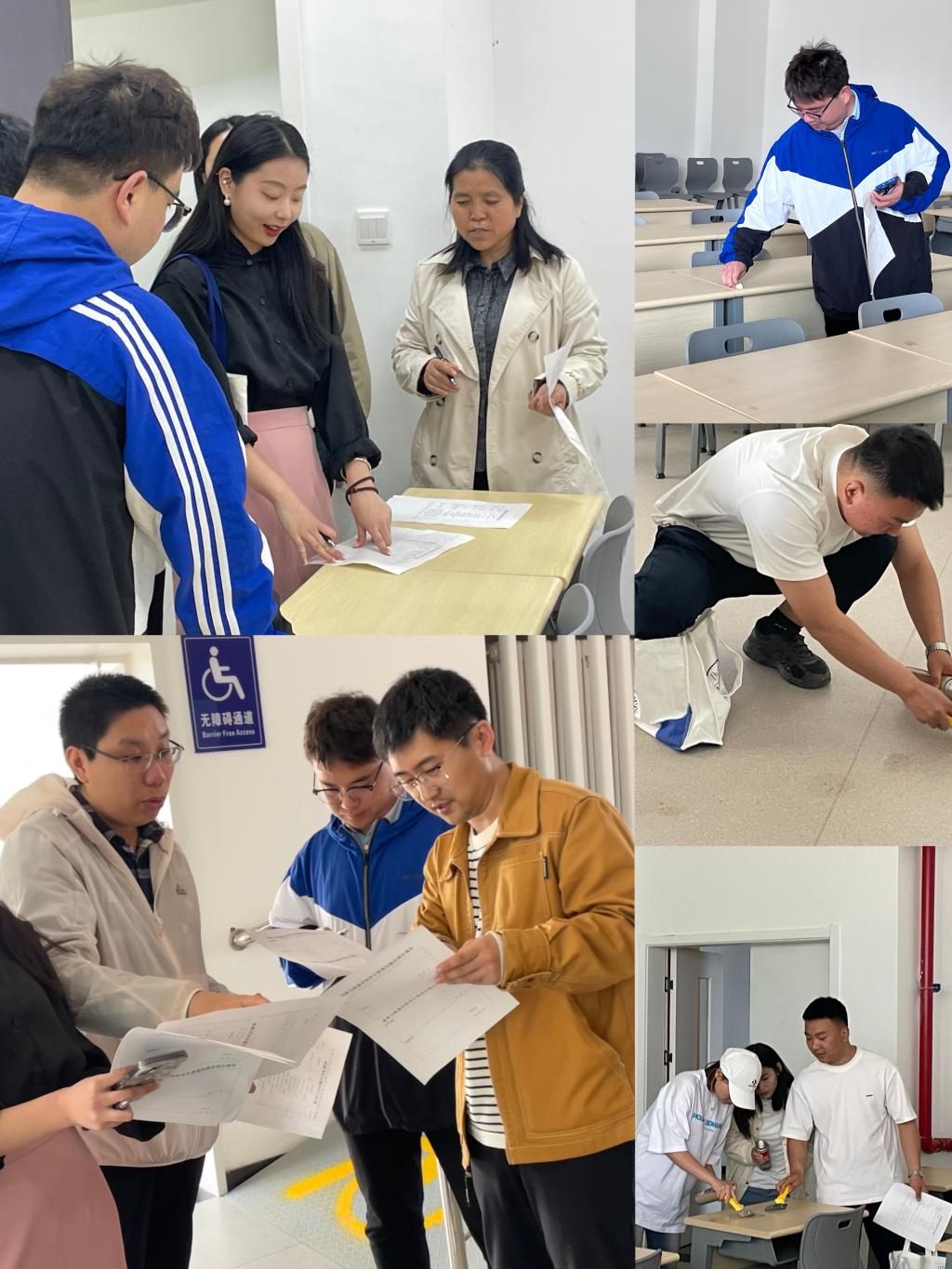 活动中,六名辅导员、班主任、学生干部依据陕西工业职业技术学院教室净化与美化评分标准对商贸与流通学院17个分管教室的教室地面卫生整洁情况、教室墙、桌、椅、门窗净化情况、教室桌椅摆放、其他设施卫生情况、教室文化建设情况等进行检查评分,并对各教室存在的问题进行了现场整改。