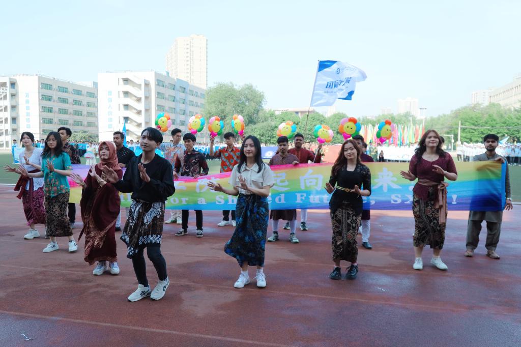 留学生运动员与中国学生同台竞技,感受着运动带来的魅力,体会着拼搏带来的喜悦。运动会不仅仅是一场体育赛事,更是留学生与中国学生共同参与的校园文化交流活动。来自孟加拉国的米亚说道,“能够与来自中国和其他国家的同学一起准备开幕式表演,将成为我校园生活的美好回忆。”