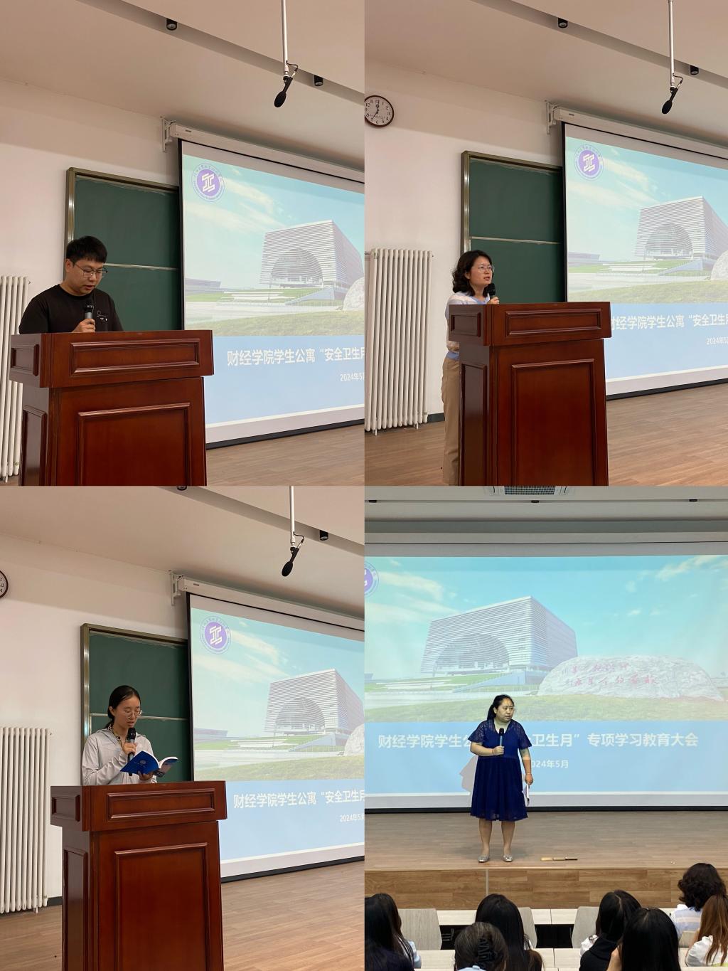 为积极响应学校宿舍安全卫生月活动安排,切实加强公寓安全教育和学生日常管理工作,打造优良的公寓文化,改善公寓卫生状况,全力消除公寓存在的各类安全隐患,财经与旅游学院5月20日晚在崇理楼E100开展公寓“安全卫生月”专项学习教育大会,学工办主任杜娟老师、辅导员、2022级班主任及2022级全体学生600余人参加了此次会议。