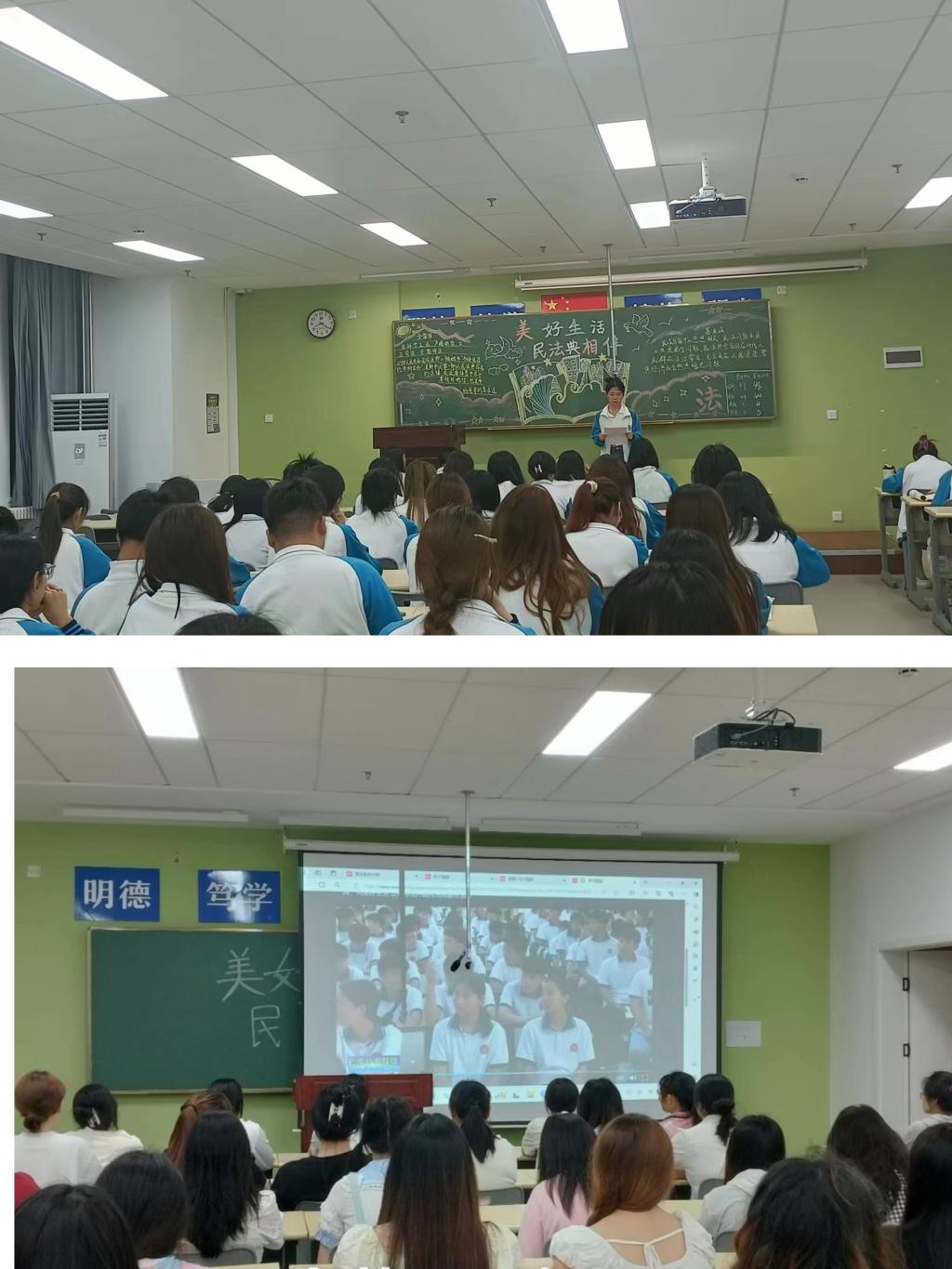 为了进一步弘扬法治精神,提升学生法治意识,切实做好学生的民法典学习教育,提高我校师生对民法典重要性的认识,培养学生的法律意识和法治观念。财经与旅游学院于5月27日晚在2022级与2023级各班召开“美好生活 民法典相伴”主题班会。