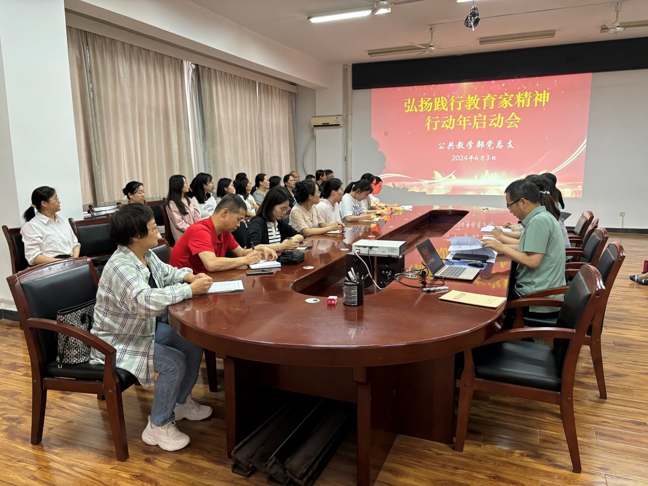 6月3日,公共教学党总支组织部门全体教师在崇文楼A501会议室召开了“弘扬践行教育家精神行动年”启动会,会议由公共教学党总支书记苏宏志主持。