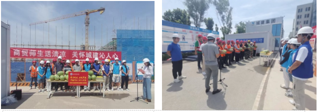 6月27日,陕西工业职业技术学院商贸与流通学院联合校团委、基建处,共同奏响一曲公益与爱的华彩乐章。此次活动以“商贸师生送清凉·关怀城建沁人心”为主题,将西瓜的甘甜与清凉送到陕西工业职业技术学院经开校区建筑工地,为我校经开校区辛勤工作的一线施工人员带来了丝丝凉意与深切关怀,生动诠释了公益助农、课程思政、劳动教育、校企合作、乡村振兴及混合式教学的深刻内涵。