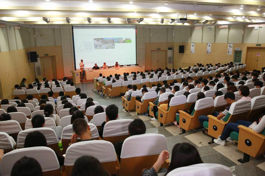 玛格达莱纳·普隆卡校长首先对众多师生的参会表示感谢,介绍了MSKPU国际服装与时尚设计学院的基本情况,然后从保护动物、减少破坏、保持生态平衡阐述了时装设计行业所需要的职业道德,并从有机新材料、可回收性、环保节能等方面分析了时装设计的发展方向。随后,玛格达莱纳·普隆卡校长与我院师生进行互动,生动形象的回答了师生提出的问题。