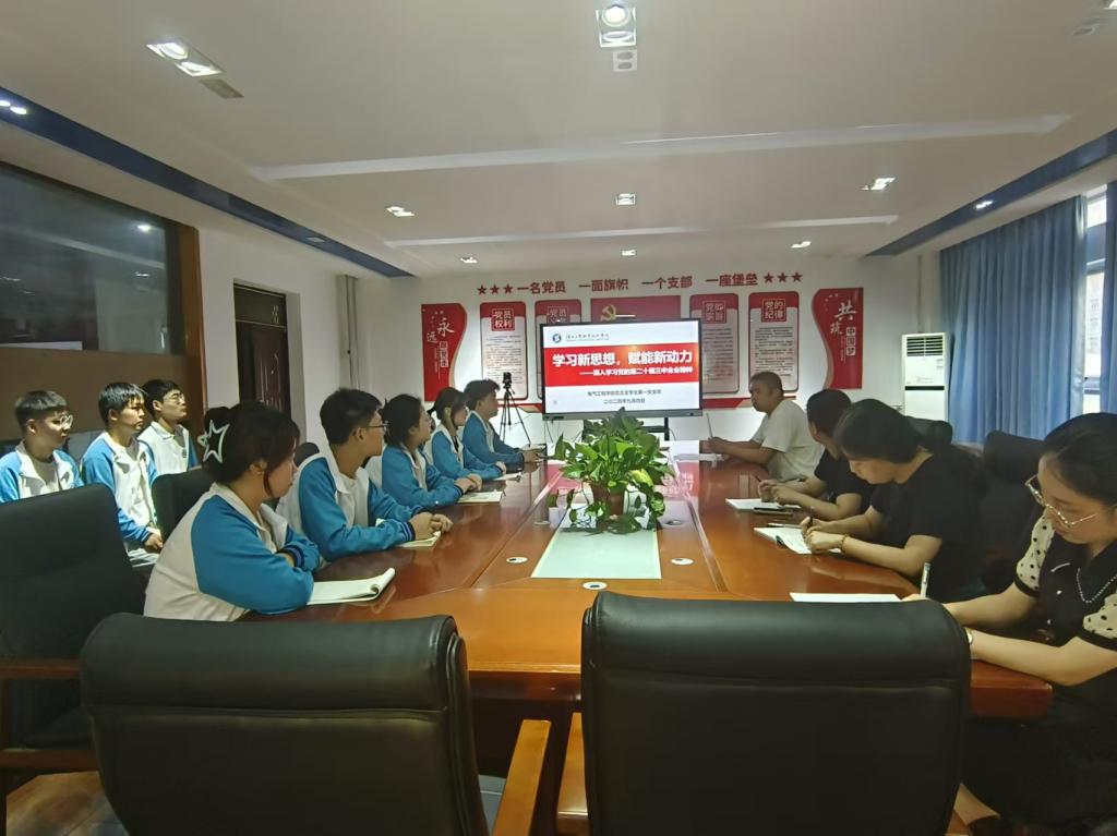 为深入学习贯彻党的二十届三中全会精神,引导党员同志领会会议精神,汲取奋进力量,9月4日下午,电气学院学生党支部组织全体党员在行知楼A506党员活动室开展“学习新思想,赋能新动力”主题党日活动,学生第一支部书记夏远贵担任主持。