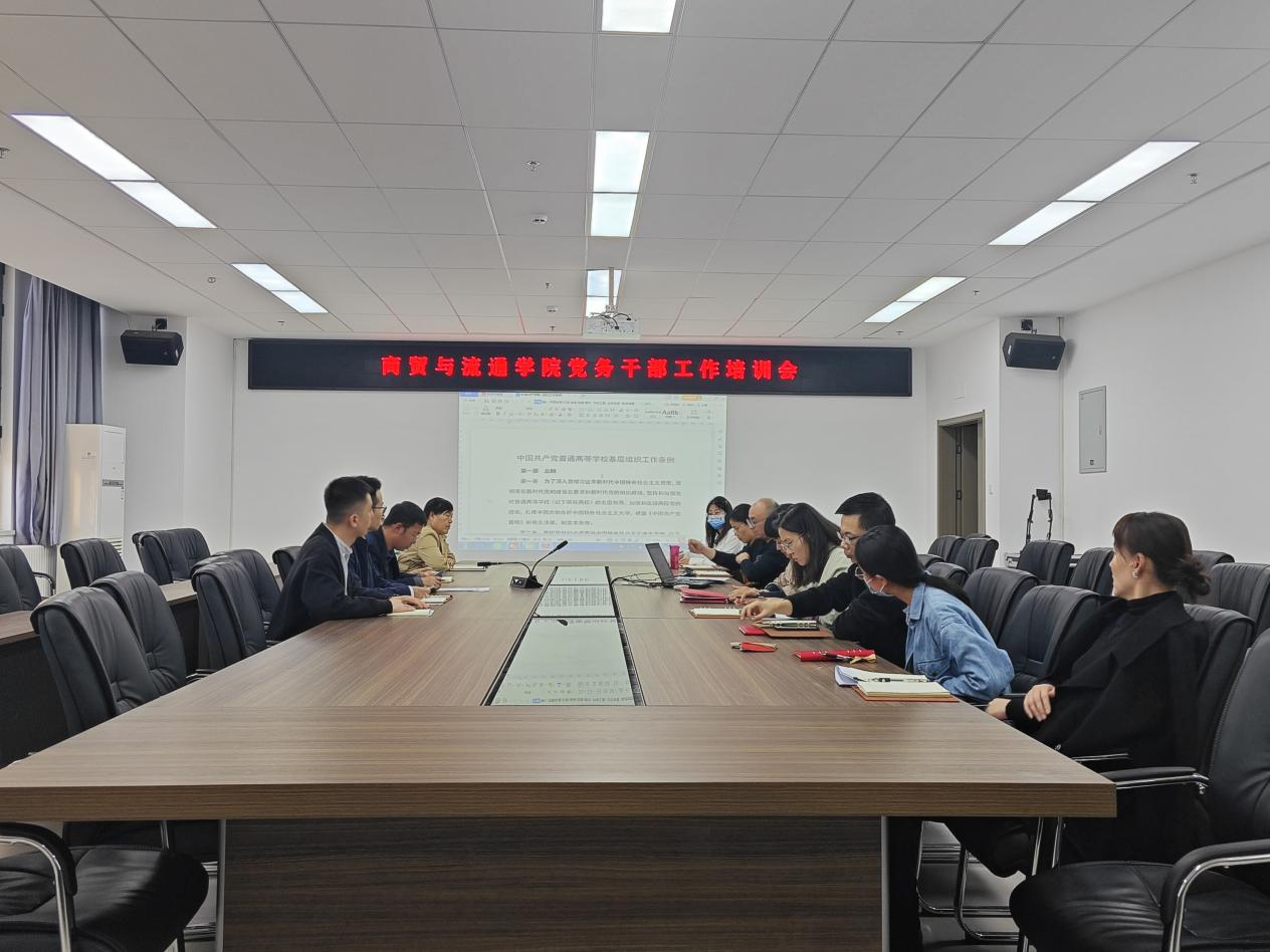 为进一步提升党务干部业务工作水平,5月8日,商贸学院党总支组织全体党务干部在604会议室召开专题培训会,集体学习《中国共产党普通高等学校基层组织工作条例》。党总支副书记蒋鹏主持培训。