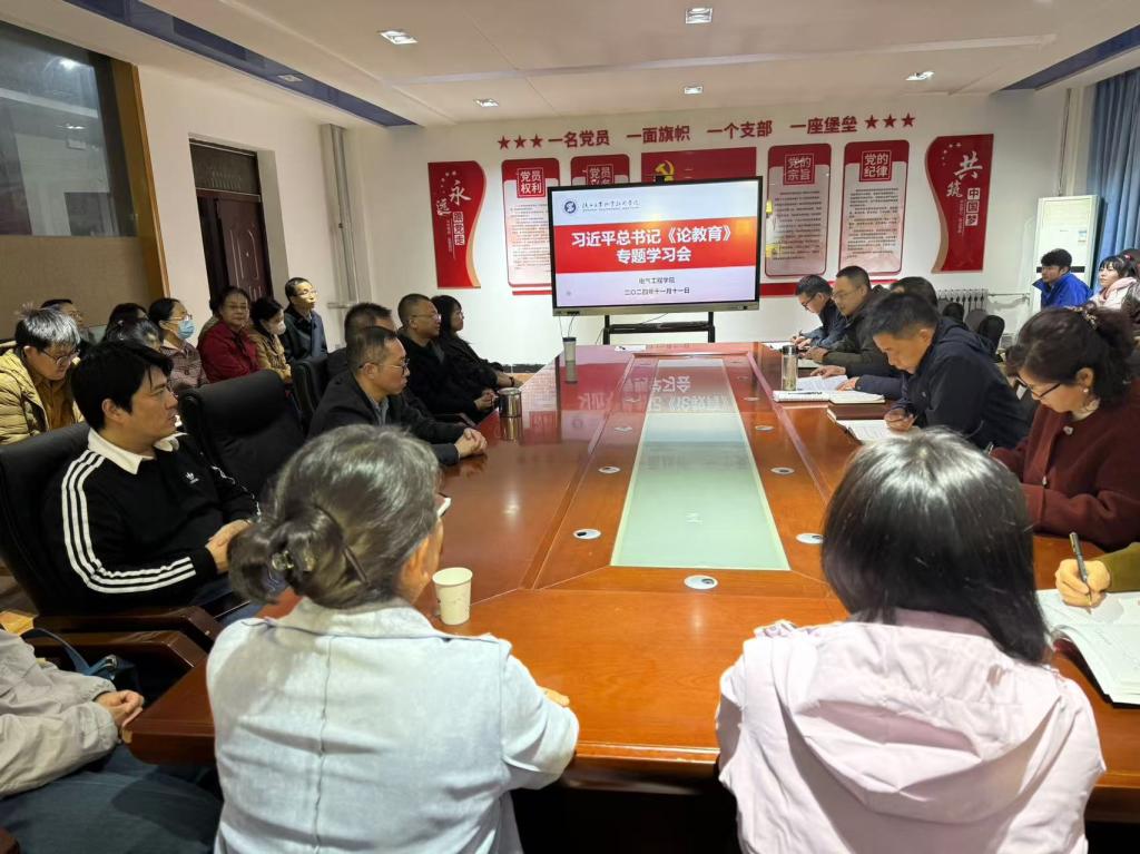11月11日,电气工程学院在党员活动室召开了习近平总书记《论教育》专题学习会。会议由电气工程学院党总支书记刘其兵主持,全体教职工参加了此次学习会。