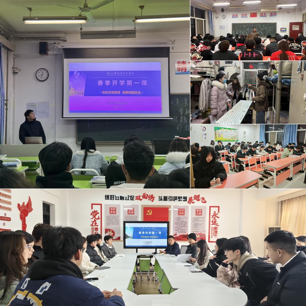 主题班会筑牢思想根基,激发班级新活力。学生工作办公室高度重视学生思想教育工作,办公室主任曹淼组织全体班主任开展以“开学第一课”为主题的班级班会。各班班主任围绕意识形态工作、安全教育、消防、防诈骗、学风建设等内容开展形式多样的主题班会,提醒同学们调整好状态,迎接新学期、树立新目标,向同学们重申校纪校规,要求同学们上课要做到不迟到不早退,宿舍内按时就寝,严格执行请假手续,并提醒同学们注意预防网络电信诈骗、不随意散播舆论,提高交通安全意识、宿舍消防安全意识等,助力学生以积极阳光的心态开启新学期的学习生活。同时结合班级实际情况,通过分享假期见闻、讨论学习计划、制定班级公约等形式,引导学生树立正确的价值观,明确学习目标,增强集体荣誉感。班会现场气氛热烈,学生们积极参与,展现了新学期昂扬向上的精神风貌。此次主题班会不仅为新学期的学习生活奠定了坚实的思想基础,也进一步增强了班级凝聚力和向心力。