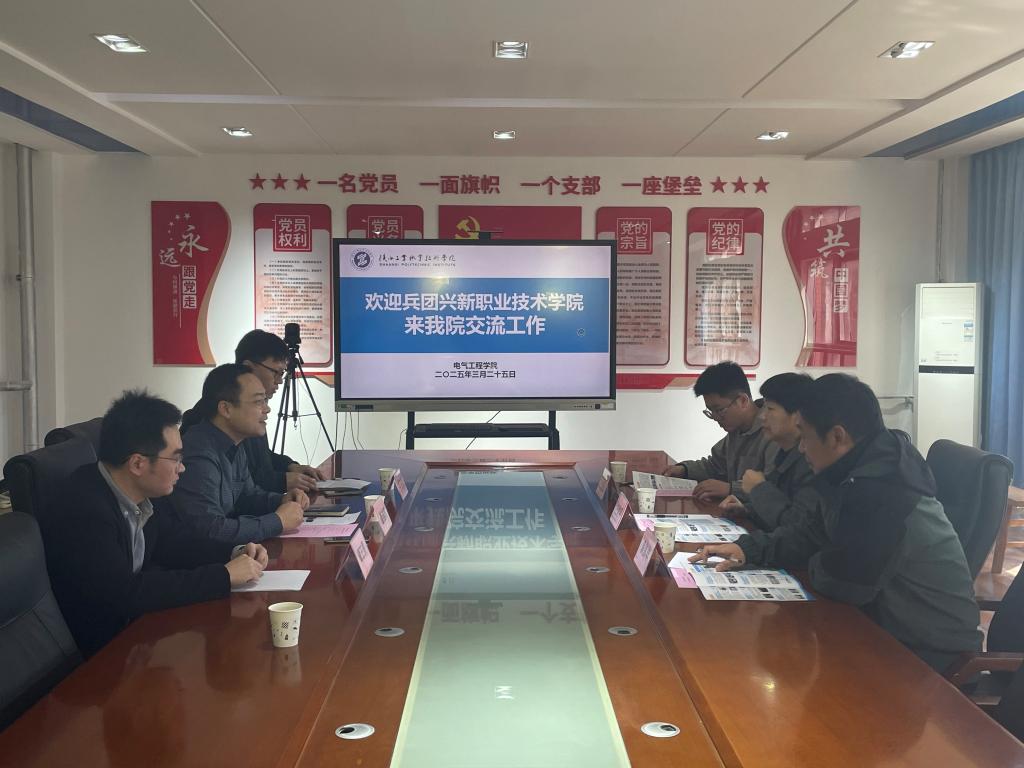新疆生产建设兵团兴新职业技术学院能源与动力学院副院长王常平一行到访我校电气工程学院,双方围绕专业设置、人才培养、校企合作、学生就业、实验室建设及技能大赛等主题展开深入交流。