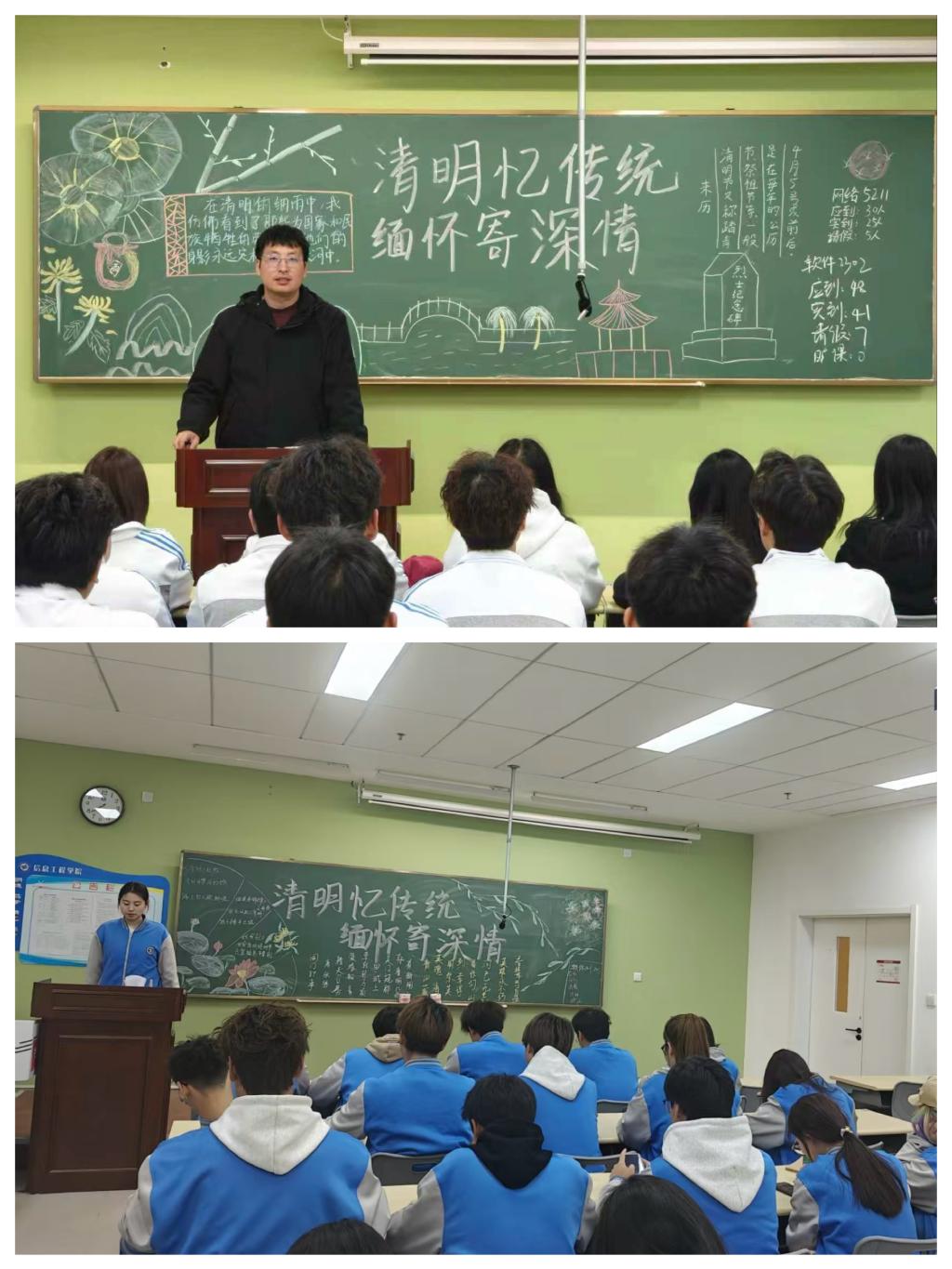 为缅怀革命先烈、传承红色精神、发扬传统文化,3月31日晚信息学院各班利用晚自习时间召开“清明忆传统,缅怀寄深情”主题班会。班会通过讲述清明习俗、分享英雄故事、交流研讨等形式,引导同学们感悟传统文化内涵,传承红色精神。