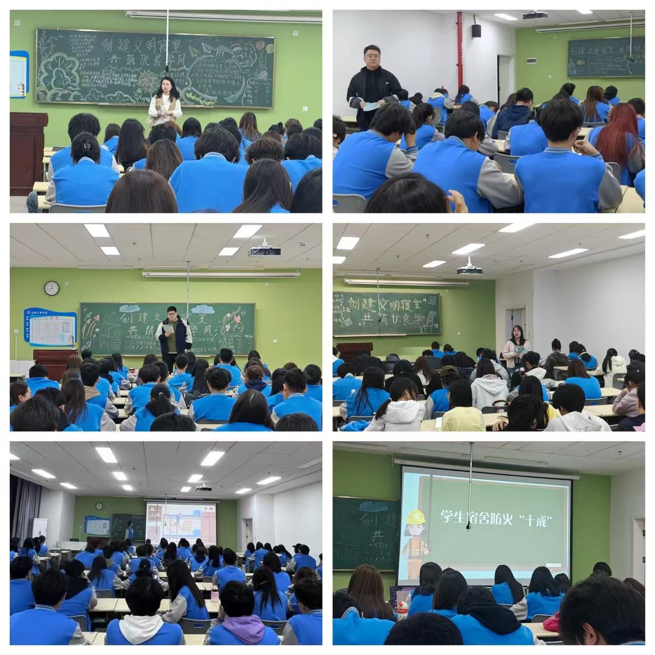 班会上,同学们集中观看了文明寝室建设与学风养成教育专题视频。视频通过生动的案例和详实的数据,展示了文明寝室对个人成长和集体凝聚力的重要作用。观看过程中,同学们认真聆听,深刻认识到寝室不仅是生活的场所,更是学习交流、共同进步的重要空间。随后,班主任结合视频内容进行深入引导,从“寝室环境与学习效率”“室友关系与心理健康”“自律习惯与学风建设”三个方面展开讲解,鼓励同学们以寝室为单位,制定学习计划,形成互帮互助、共同进步的良好氛围。在交流讨论环节中,同学们踊跃发言,分享自己在寝室生活中的经验和建议,并就如何营造积极向上的寝室文化氛围展开热烈讨论。大家纷纷表示,将从自身做起,从小事做起,共同维护寝室环境,助力学院学风建设。