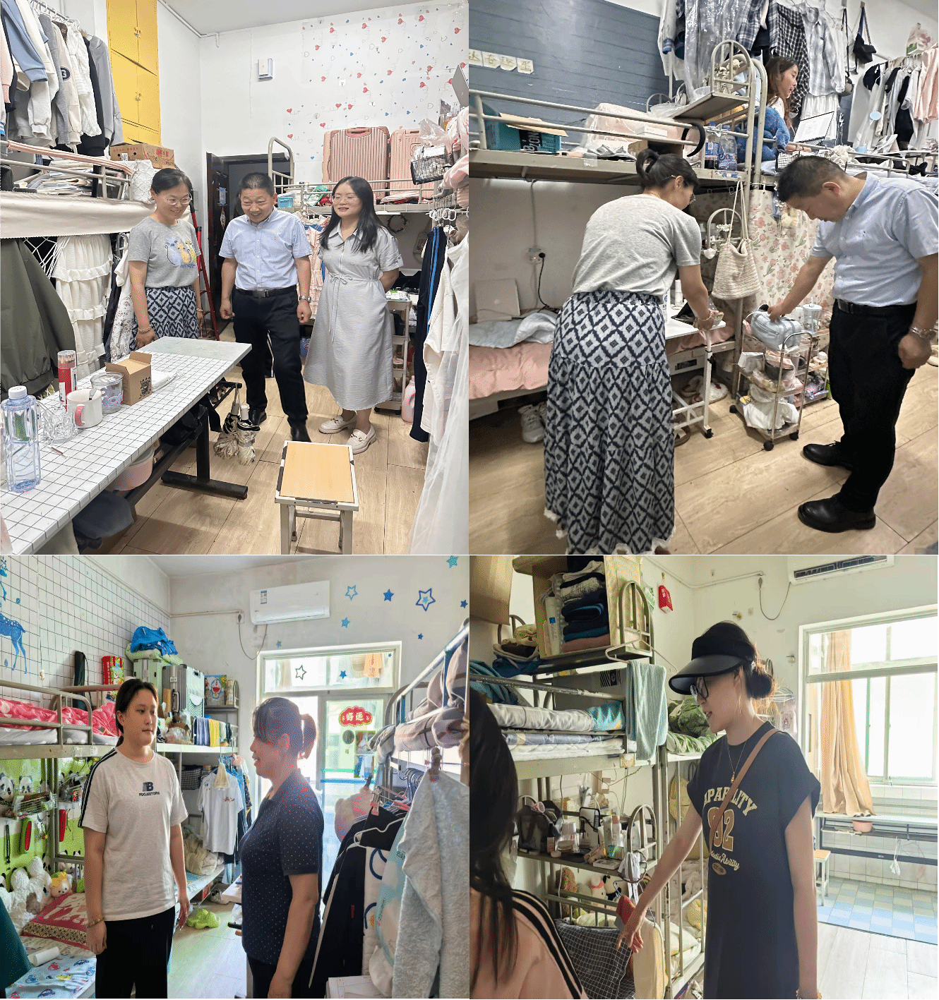 由化工与纺织服装学院党总支书记带队,联合学工办、辅导员及学生代表组成检查小组,对学生公寓进行拉网式全覆盖检查。重点聚焦排查违规电器使用、易燃易爆物品存放、管制刀具等安全隐患;及时清理阳台及室内堆积的纸箱、快递包装等可燃物,消除火灾风险;同时开展心理健康调研,对本院混合宿舍学生关系进行评估,建立重点关注台账。针对发现的问题,检查组要求立行立改,并跟踪复查确保整改到位。