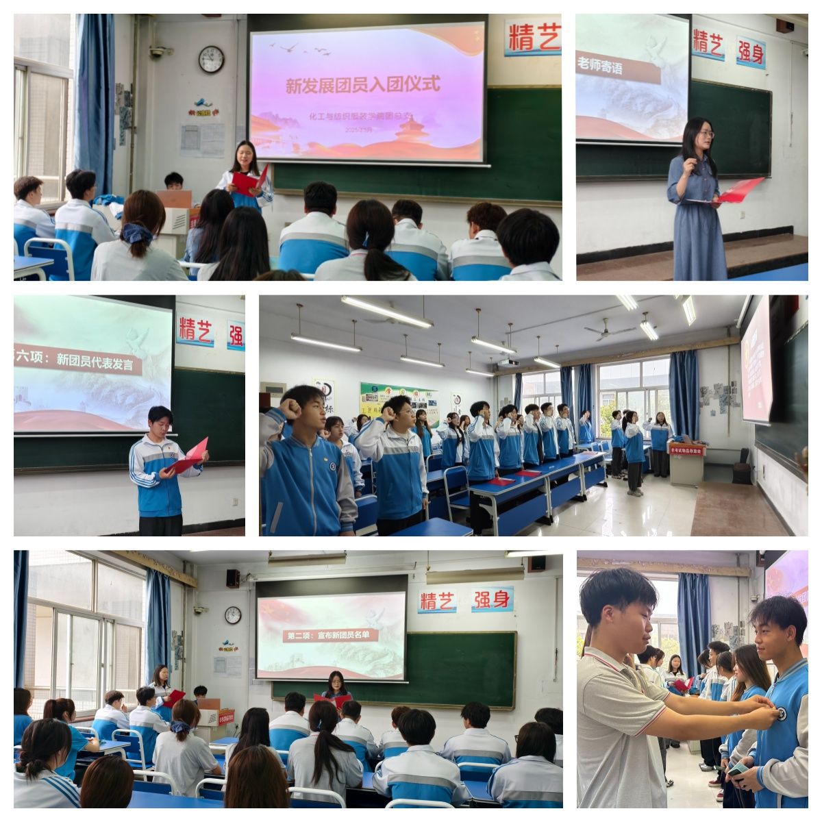 入团仪式在激昂的国歌声中拉开帷幕。曹淼宣读新发展共青团员名单后,新发展共青团员们怀着激动的心情依次上台。曹淼与共青团员代表为他们颁发共青团员证,并佩戴团徽,这不仅是荣誉,更是责任与担当。