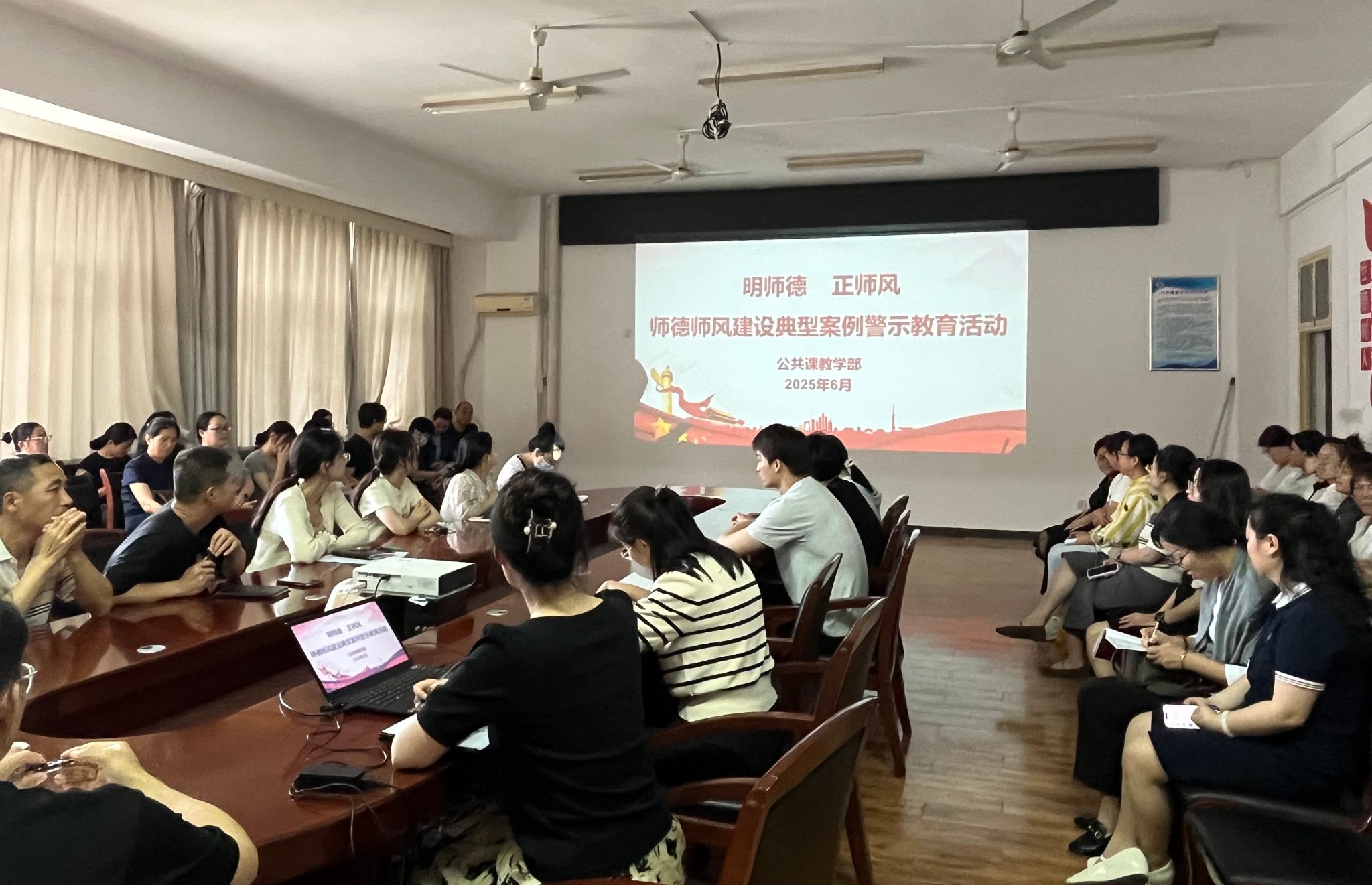 此次专题学习会议以真实案例为镜鉴,通过深入学习与思想交流,进一步夯实了公共课教学部全体教师的职业理想与道德根基。教师们将以此次学习为契机,持续锤炼师德师能,为培养担当民族复兴大任的时代新人贡献坚实力量。