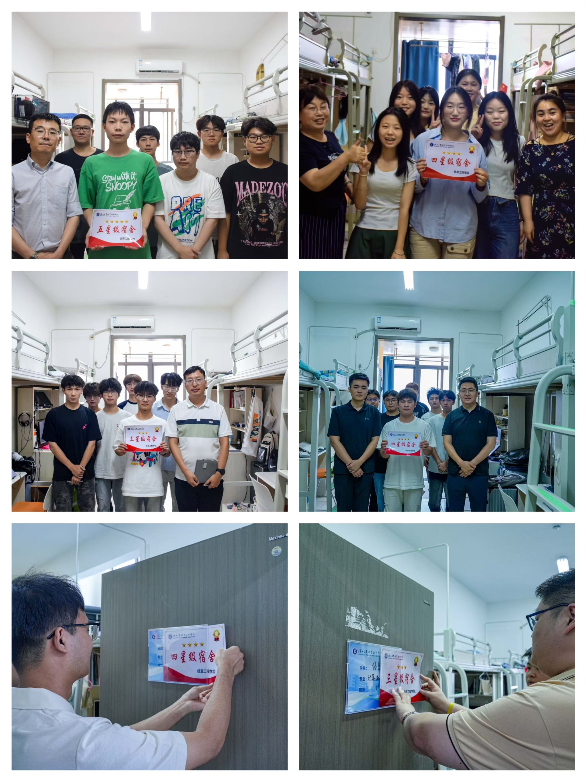 优秀党员宿舍、星级文明宿舍挂牌不仅是对优秀宿舍的表彰,更是希望通过榜样力量,带动全体同学共同参与宿舍文明建设,让每一间宿舍都成为温馨的家园、成长的摇篮。信息工程学院将持续深化宿舍育人功能,建立优秀党员宿舍、星级文明宿舍动态管理机制,定期开展复查与交流活动,并计划推出 “宿舍知识竞赛”“最美床铺” 等系列活动,推动宿舍文化建设常态化、品牌化,为学生成长成才提供更优质的环境与服务。