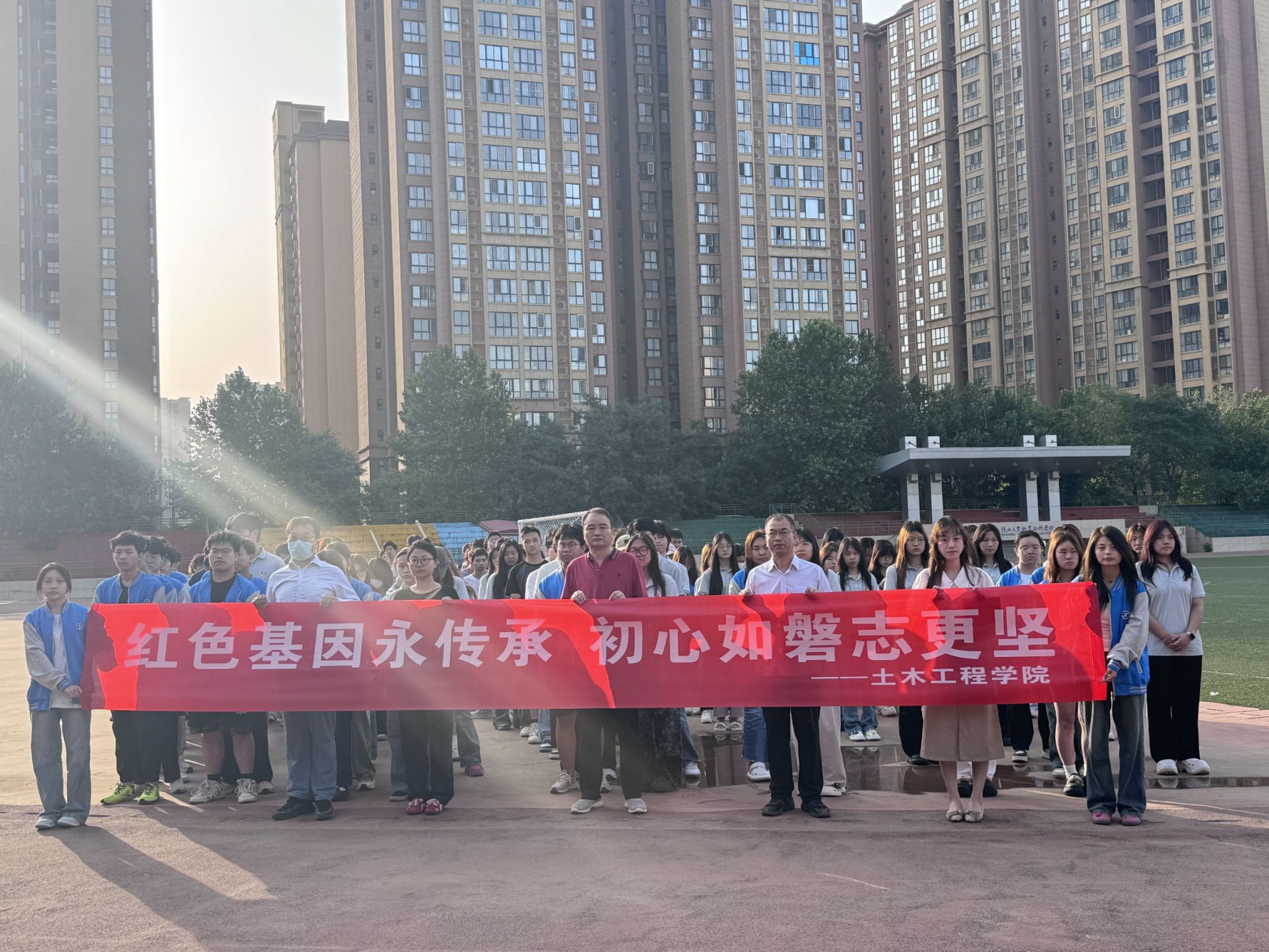 为深化爱国主义教育、厚植青年学子红色情怀,6月16日清晨,土木工程学院在学校操场组织开展“红色基因永传承 初心如磐志更坚”国旗下的成长主题教育活动。土木工程学院党总支书记卢文澈、学工办主任马俊,土木学院全体辅导员及24级学生代表等200余人参与活动。