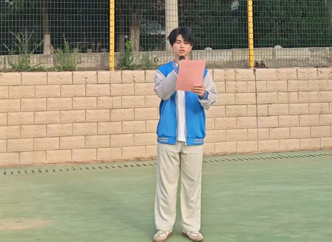 升旗仪式后,学生代表道桥2401班邱宇航以《承红色薪火 立青春之志》为题发言。他深情表示,仰望国旗时总会想起用热血染就旗帜的革命先烈,这抹鲜红早已融入血脉,成为永不褪色的精神密码。作为青年学子,应主动传承红色基因,将个人理想融入民族复兴伟业,以奋斗之姿激活精神力量,让青春在强国征程中绽放绚丽之花。