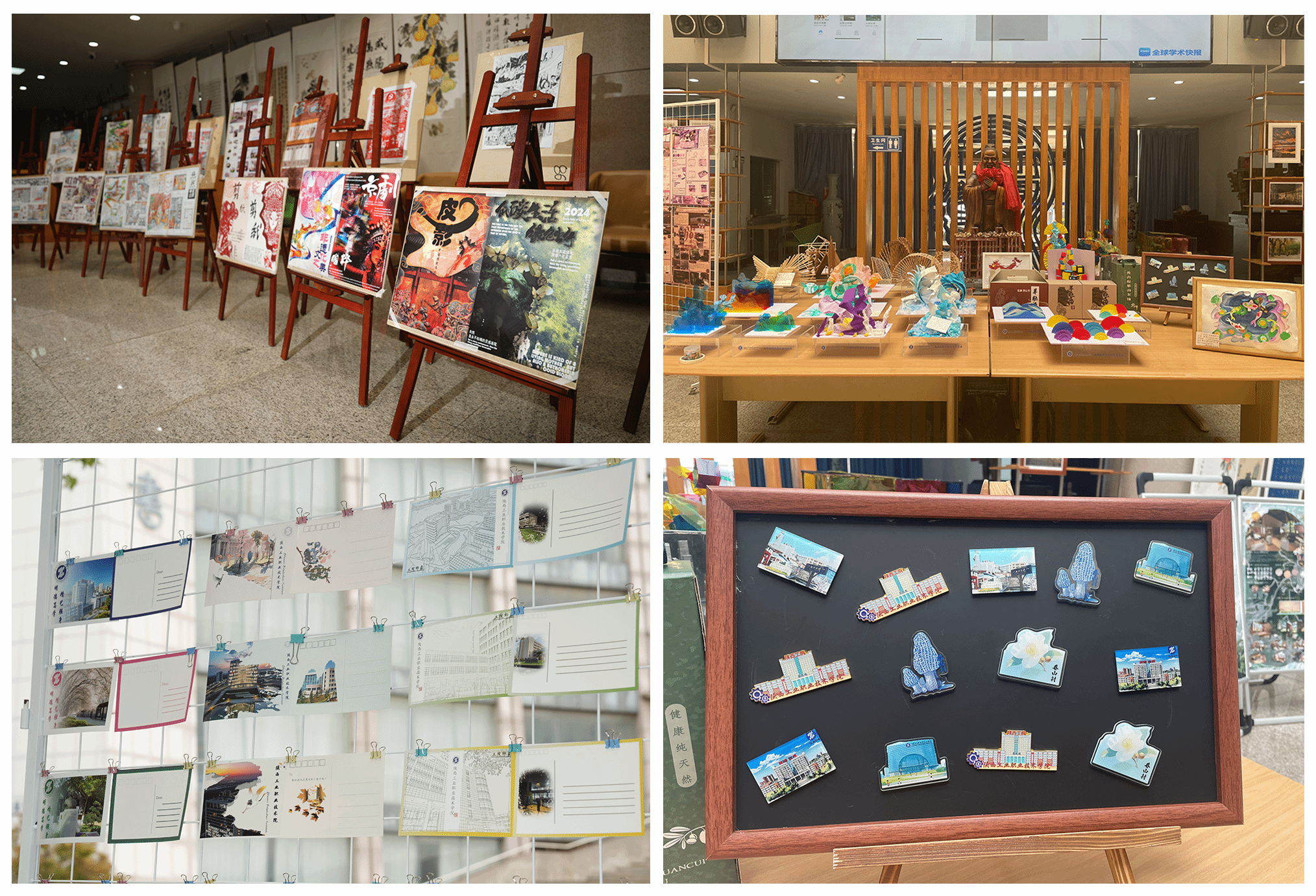 本次展览总共展出一百余件学生优秀作品,涵盖空间设计、模型设计、平面设计、农产品包装设计以及文创产品等模块。空间设计模块围绕红色文化、养老服务、乡村振兴等方向进行创新设计,作品在坚持功能性的同时,通过材质创新、科技融合、可持续设计等手法,展现了空间设计的多元探索。模型设计作品集中展现了学生在三维造型、空间构成与材料创新方面的探索。本次展览的平面设计模块紧扣时代主题与文化传承,以低碳生活、非遗文化、生态文明、乡村振兴等为主题,突出室内设计专业“设计驱动美好生活”的教学理念。农产品包装设计模块展现了设计赋能农业的实践成果,山茶油、羊肚菌系列农产品包装以我校对口帮扶村庄香山村特色物产为载体,通过现代设计提升产品附加值。文创产品板块以校园文化为主题,作品包含校园明信片,艺术冰箱贴、钥匙扣等产品,集文化、创意、美感于一体。展览现场作品精彩纷呈,不仅体现了室内设计学生扎实的专业功底和丰富的创造力,更彰显了室内设计专业立足新时代、服务社会的责任担当。