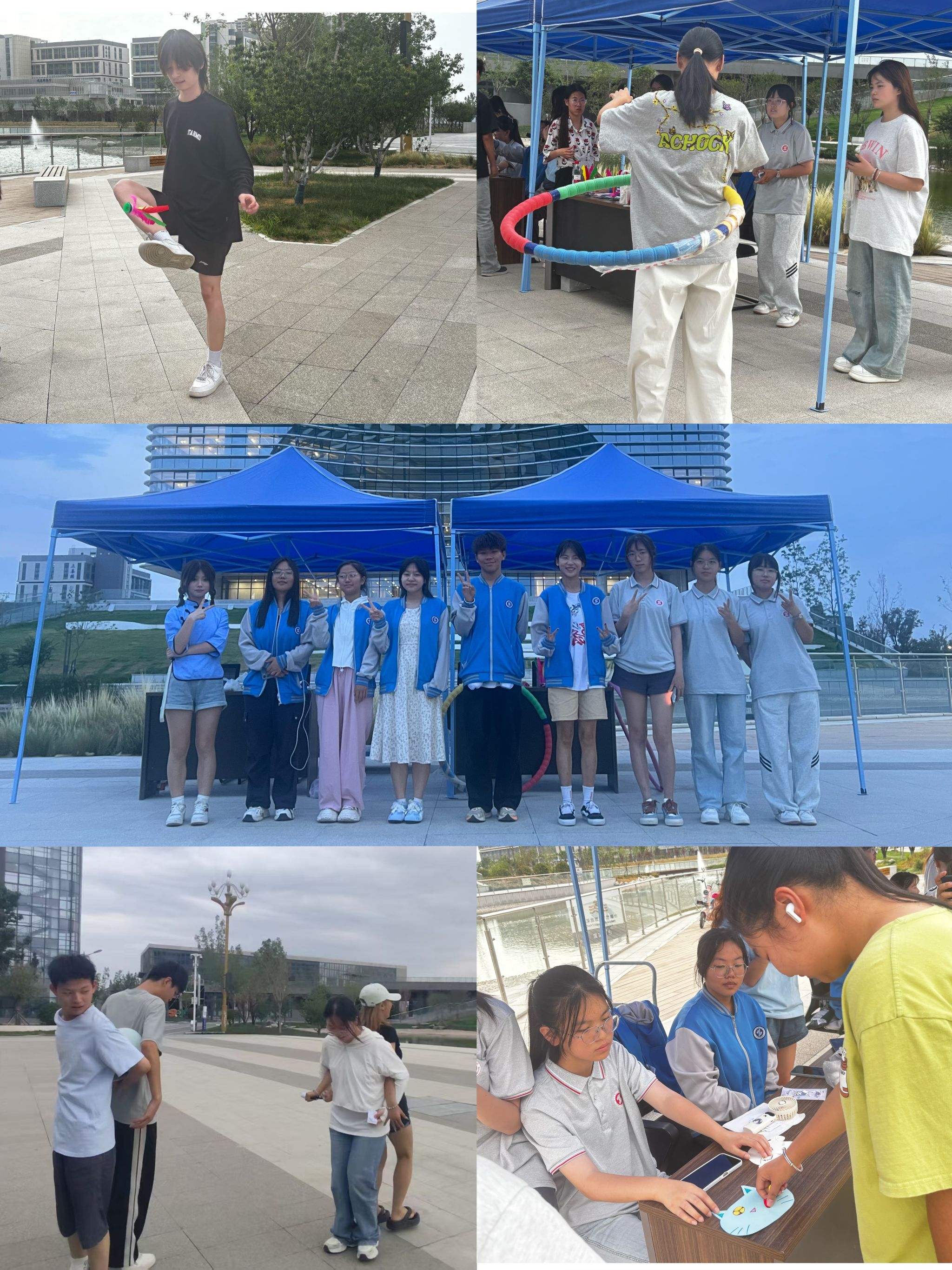 活动现场,各个趣味项目同步开展,点燃了参与者的热情。踢毽子单人计数赛中,参与者在规定区域内轻盈腾跃,踢够 5 次即可获集章卡片;呼啦圈耐力赛里,选手们腰肢轻摆,需在规定区域转够 30 秒,失败可重来;筷子夹乒乓球项目,参与者需在 30 秒内从起点出发用筷子夹回 2 个乒乓球;蒙眼贴五官环节,两人一组蒙眼转 3 圈后协作将五官贴至正确位置,按准确性获卡;气球运输项目则要求两人背夹气球运至指定地点,途中气球不掉落或挤破即成功,各项目现场笑声与加油声交织,尽显青春活力。