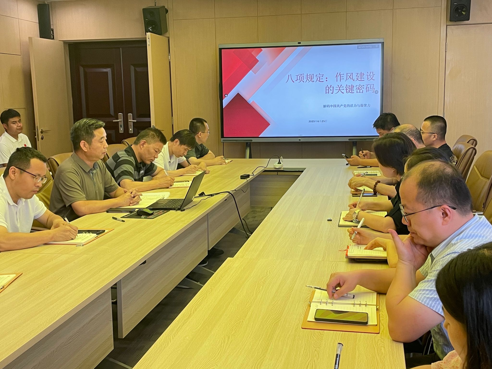 党课开篇,殷锋社同志聚焦“党的十八大以来深入贯彻中央八项规定精神的成效和经验”,带领全体党员深入学习习近平总书记关于落实中央八项规定精神的重要论述。他详细阐述了党中央以身作则、率先垂范,引领全党上下齐心协力,扎实推动贯彻中央八项规定精神所取得的显著成效与宝贵经验,使党员们对作风建设的重要性与紧迫性有了更为透彻的认识。