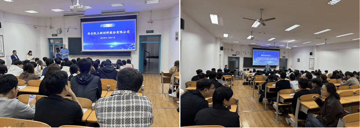 9月18日下午,西安凯立新材料股份有限公司,在我校崇文西楼103阶梯教室,为化工与纺织服装学院举办专场招聘宣讲会,聚焦应用化工技术、石油化工技术专业学生开展招聘宣讲。