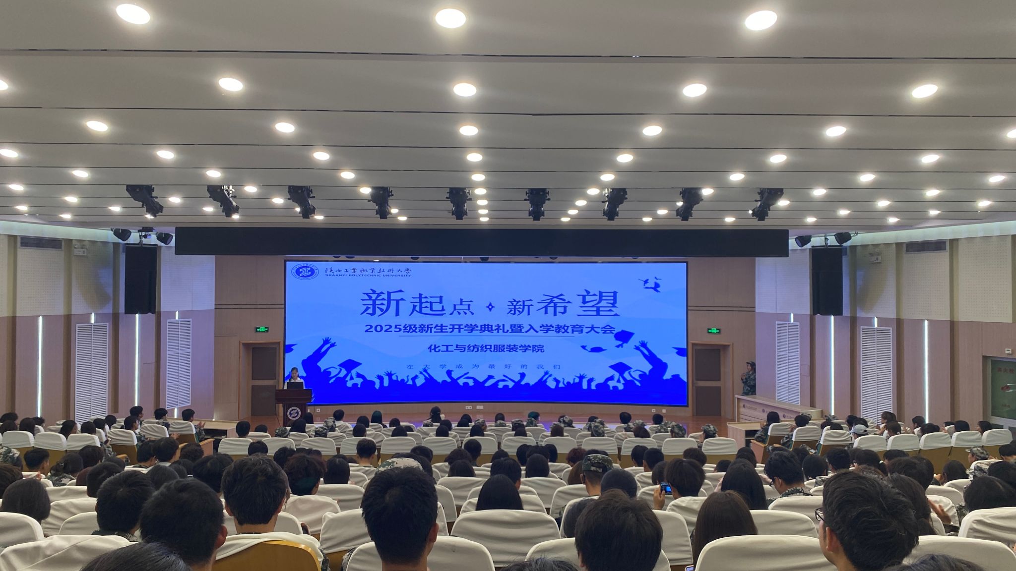 9月28日晚,化工与纺织服装学院2025级学生开学典礼暨入学教育大会在学术会堂盛大启幕。化工与纺织服装学院党总支书记杨修国、院长刘迪、教学管理办公室主任赵伟、工程训练中心主任梁博、学工工作办公室主任曹淼、新生班主任以及380余名朝气蓬勃的新生齐聚于此,共同翻开大学生活的崭新篇章。本次会议由教师王雪主持。